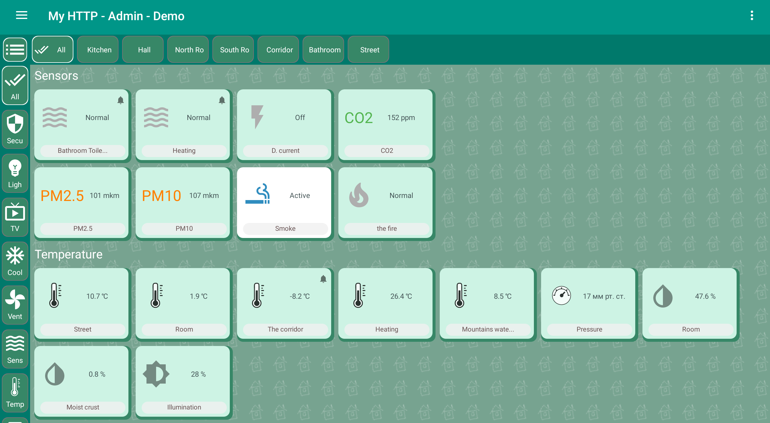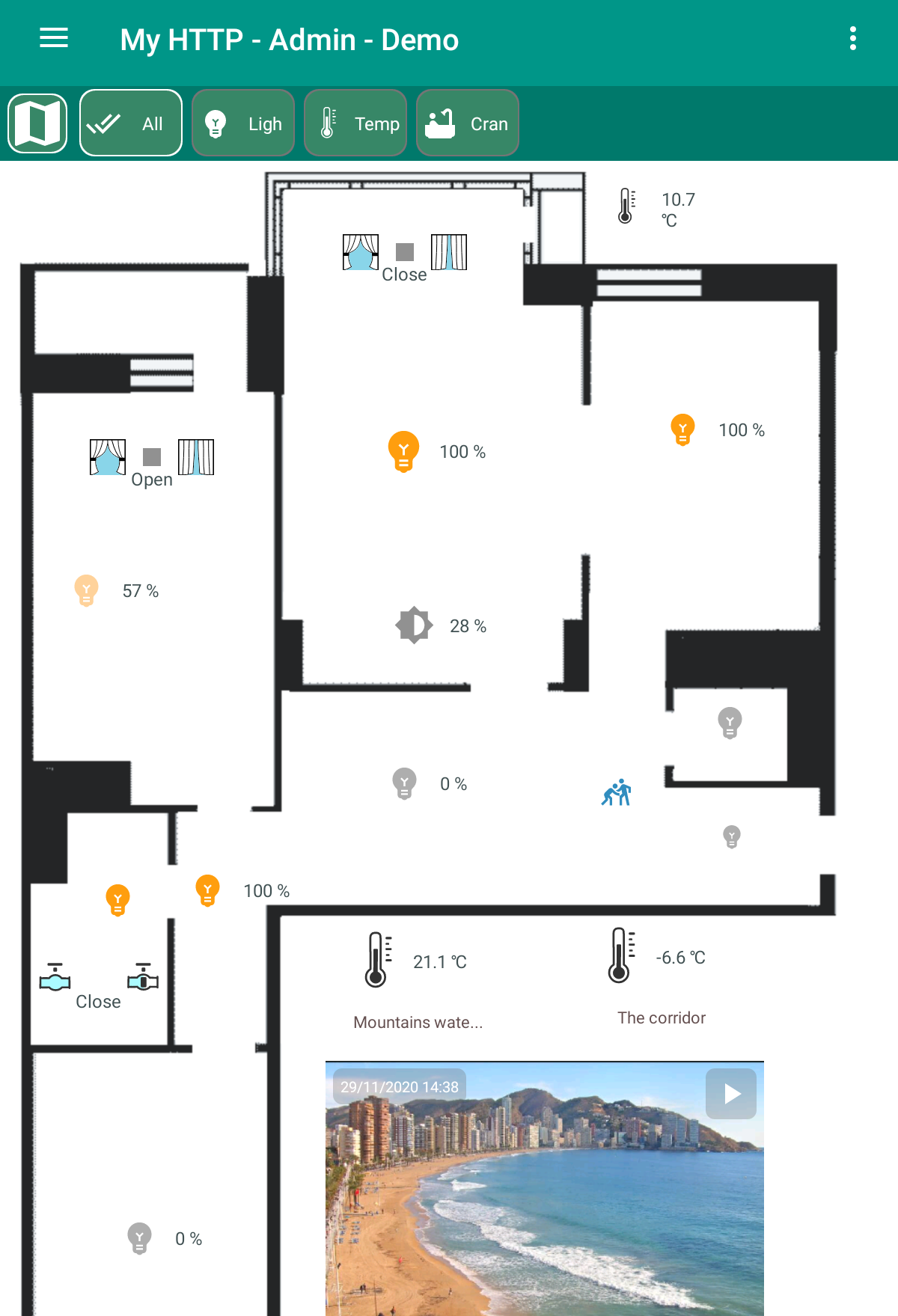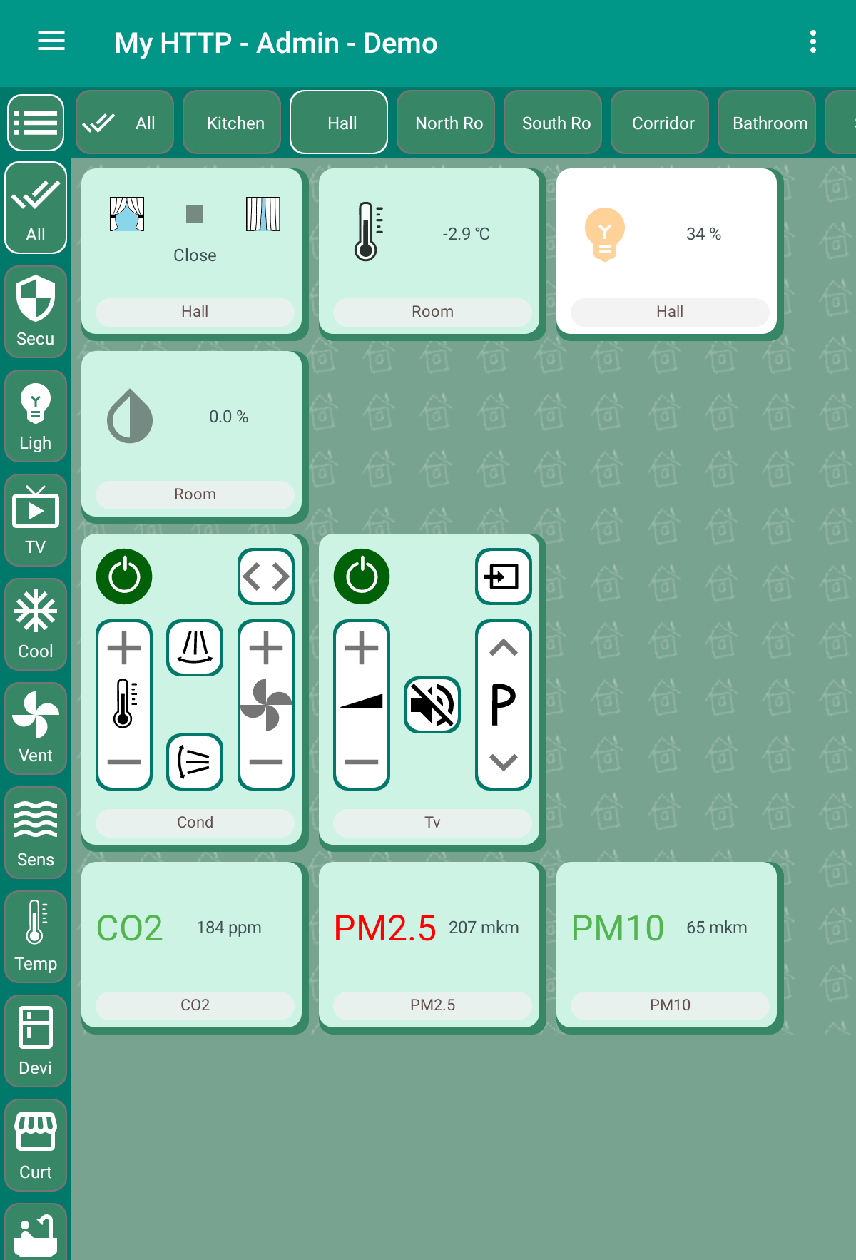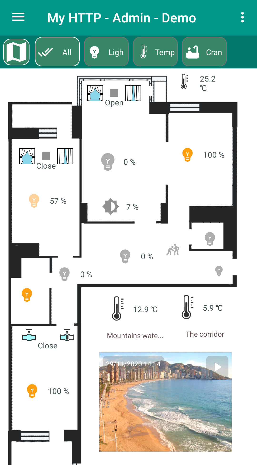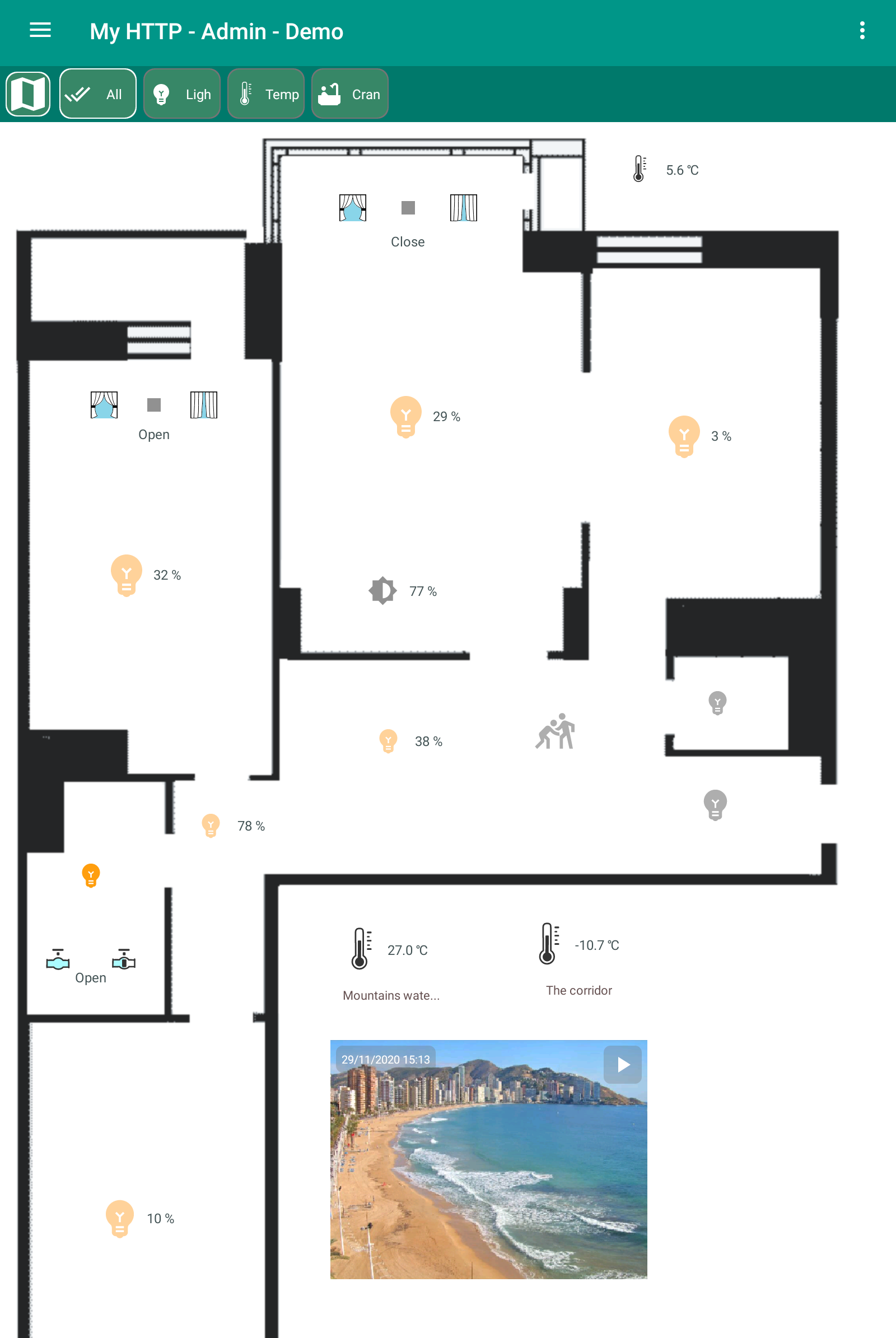 Smart home "Globus" - control of any devices via MQTT and HTTP protocols: 1) Control of light, curtains, cranes 2) Macros, programs, schedules 3) Schedule according to the position of the sun, for example, closing curtains 4) Cameras using the MGPG protocol 5) Charts 6) Voice control The server runs in the background even if the application is stopped. It executes macros and programs, stores values for displaying on graphs. Device support: lamp, dimming lamp, LED strip, TV, air conditioner, fan, lock, guard, siren, curtain, blinds, faucet, water meter, gas meter, kettle and other devices. Supports sensors: temperature, humidity, pressure, leakage, current, CO2, PM2.5, PM10, smoke, fire, motion, opening a window or door, lighting. The user can create programs: "Left", "Arrived", "Night" and others. Motion sensor macros. Objects can be displayed on house plans or as a list. An unlimited number of HTTP servers and MQTT brokers can be configured. Password authorization for the MQTT protocol is supported. In the program, you can create several houses and for each set up the rights and roles of users: "Admin", "User", "View only". Any object can be hidden for a specific user. You can set the time for updating the state of objects. Data is updated instantly via the MQTT protocol. If the value exceeds the allowed interval, a message is issued. For example, when the "Leak" sensor is triggered. Templates have been created for MegaD controller objects. The user only needs to specify the port number and the device works! Convenient controller setting is built in. There is a template for Wiren Board devices. After flashing, you can connect Sonoff (not tested yet). In the next version: 1) Cameras via RTSP protocol 2) Video intercom 3) Underfloor heating control 4) Templates for other controllers