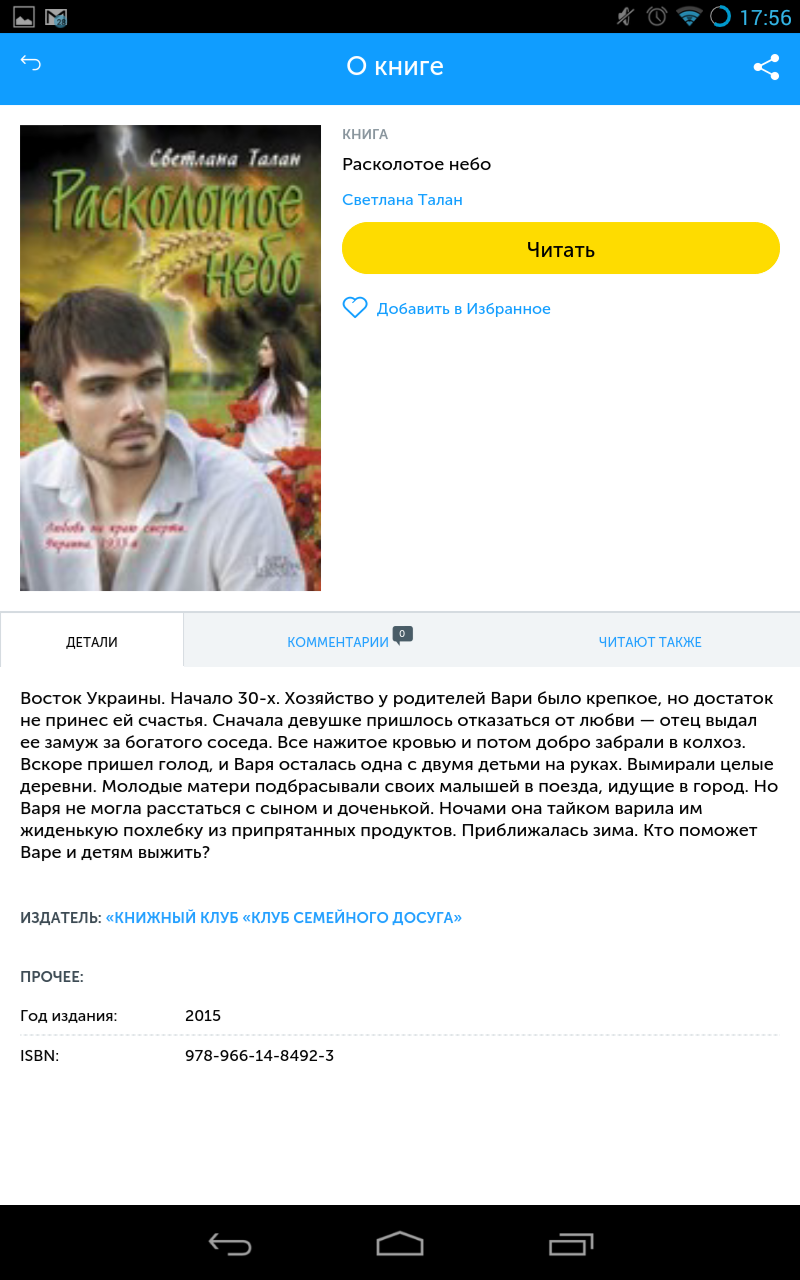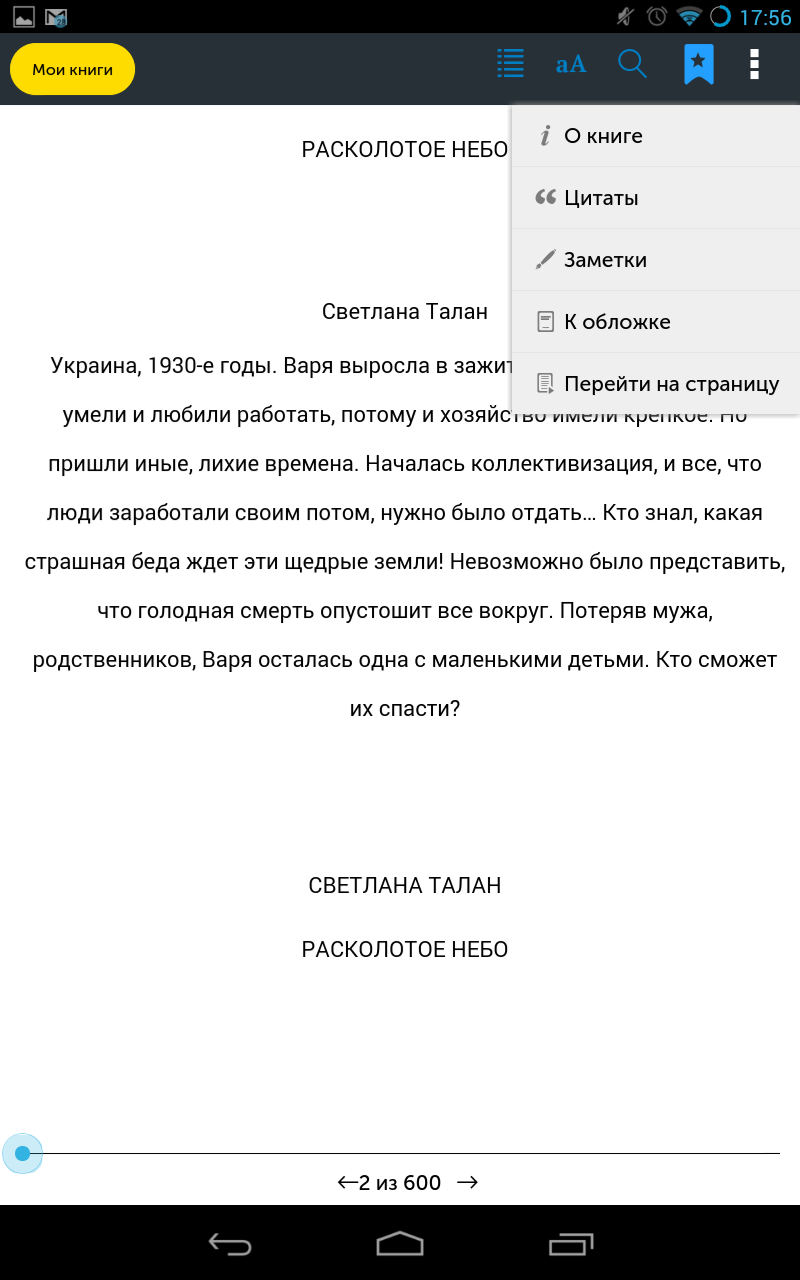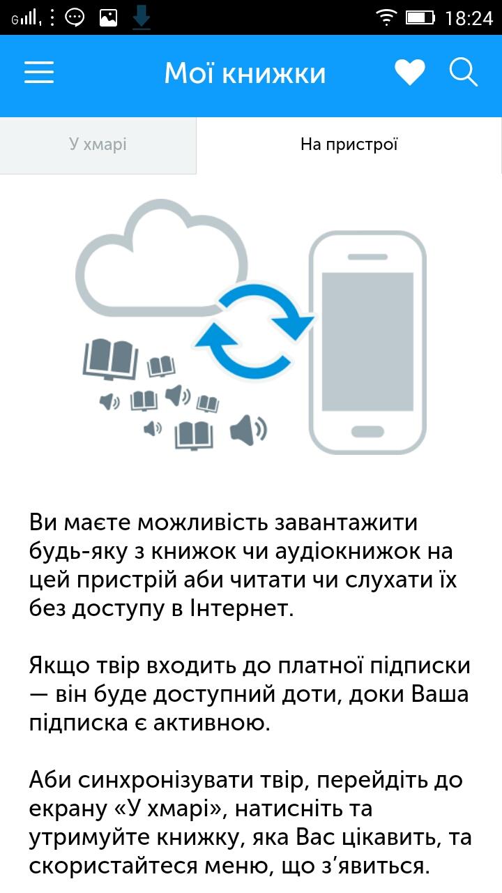 Читайте книжки та слухайте аудіокнижки зручно та швидко у «Магазині розумного контенту» — мобільній бібліотеці від найбільшого мобільного оператора України. В асортименті бібліотеки твори Ліни Костенко, Юрія Андруховича, Оксани Забужко, Сергія Жадана, Віктора Пелевіна, Василя Шкляра та інших сучасних українських і російських письменників, а також вибрані твори Івана Франка, Тараса Шевченко, Лесі Українки, Михайла Коцюбинського, Льва Толстого, Миколи Гоголя, Олександра Пушкіна, Федора Достоєвського та інших знаних класиків. Чому наш застосунок може бути цікавий саме Вам? - Понад 1000 актуальних книжок та аудіокнижок, що саме зараз продаються у книжкових крамницях. - Понад 200 безкоштовних книжок українських та російських класичних авторів, що повертають нас до витоків літератури та стануть у нагоді Вашій дитині для читання шкільної програми з літератури. - Синхронізація прочитаних або прослуханих Вами творів між усіма Вашими пристроями. Навіть із пристрою іншого абонента Ви можете читати та слухати свої книжки за допомоги веб-інтерфейсу послуги. - Можливість підтримати улюбленого автора та видавництво, читаючи або прослуховуючи їх книжки легально і доступно. - Усе це за ціною однієї поїздки у громадському транспорті на тиждень або однієї філіжанки кави на місяць. Для активації підписки на послугу надішліть SMS із будь-яким текстом на номер 2665 з Вашого мобільного із SIM-карткою «Київстар» і читайте та слухайте книжки з будь-якого Android-пристрою, що має Інтернет-з'єднання. Якщо на Вашому телефоні є літери під цифрами для набору номеру: номер підписки на послугу 2665 легко запам'ятати як «BOOK». Також Ви можете активувати підписку або відмовитись від неї на веб-вітринах послуги та у самому застосунку. Увага! Застосунок є безкоштовним, жодна плата за встановлення застосунку на Ваш пристрій не справляєтся. Якщо Ви активуєте підписку на комерційні книжки — справляється абонплата у розмірі 2 гривні 89 копійок на тиждень (з ПДВ без збору до Пенсійного фонду). Аби припинити підписку, надішліть SMS зі словом «stop» або «стоп» на номер 2665 зі свого мобільного телефону. Видалення застосунку з мобільного телефону не припиняє підписку. Якщо Ви припинили підписку на комерційні книжки — не спішіть видаляти застосунок, адже Вам все одно доступні більше 200 безкоштовних книжок та аудіокнижок українською та російською мовами. Детально із умовами надання послуги можна ознайомитись за посиланням: http://m.smart.kyivstar.ua/rules Розібратись у функціоналі застосунку допоможе інструкція із користування: http://www.scribd.com/doc/176821412 Політика конфіденційності за посиланням https://kyivstar.ua/uk/about/important_data/apps-privacy-policy