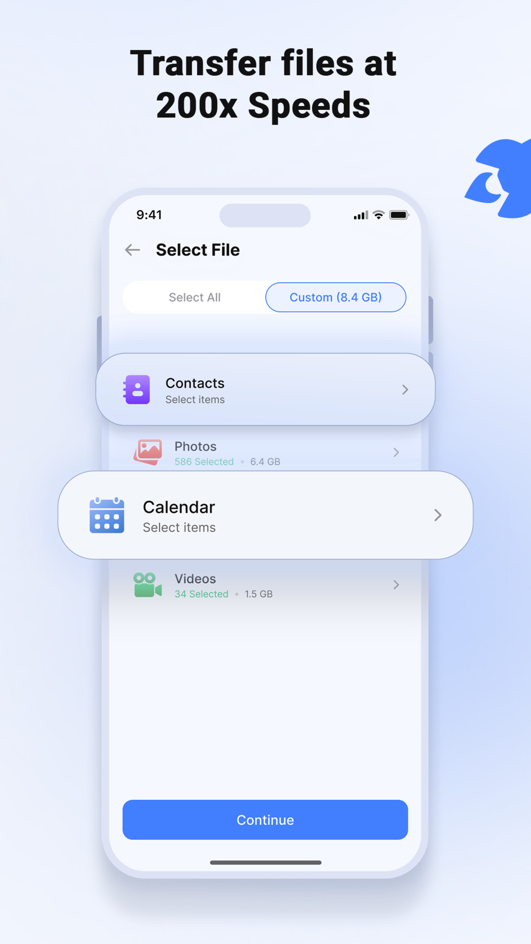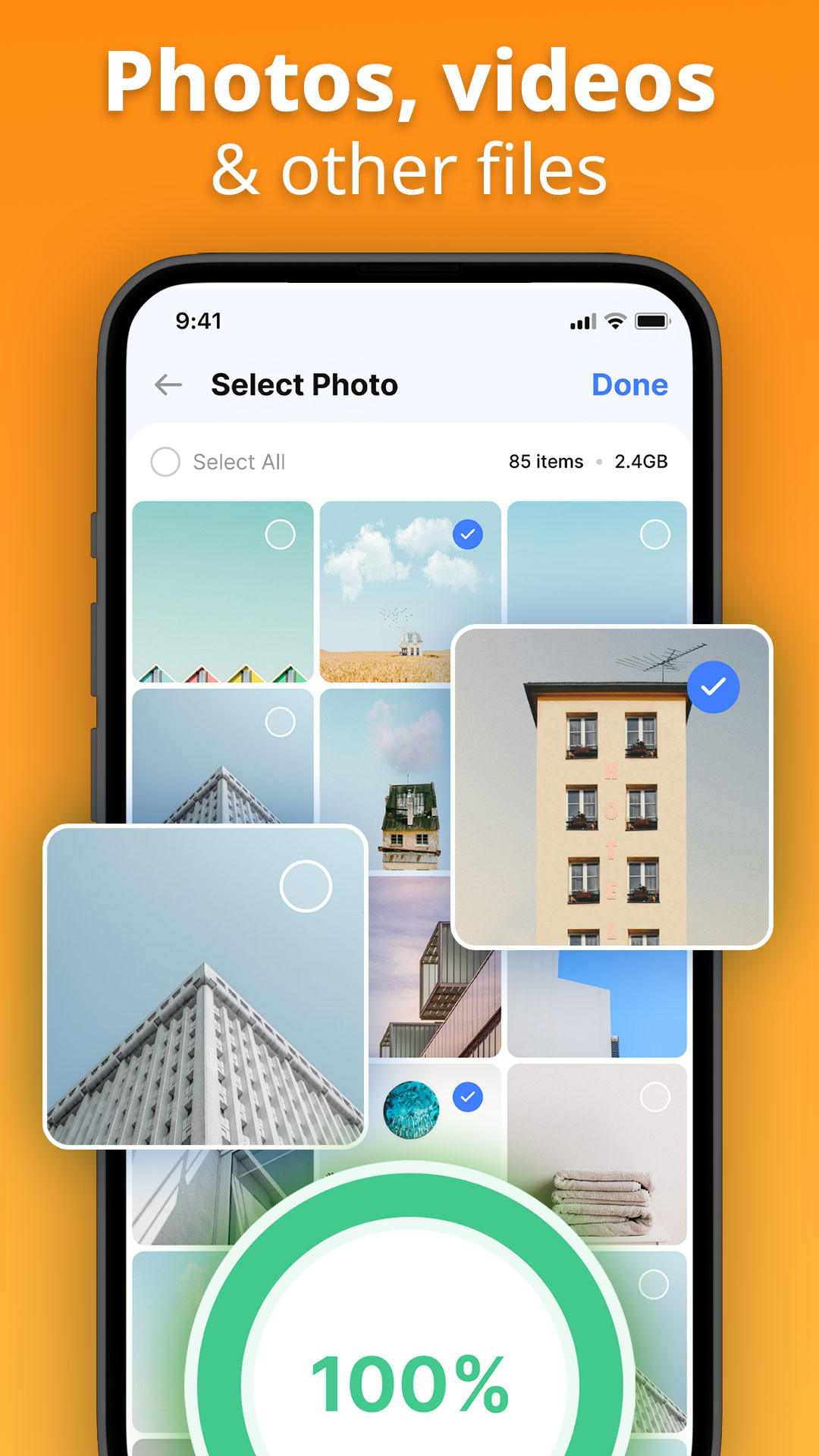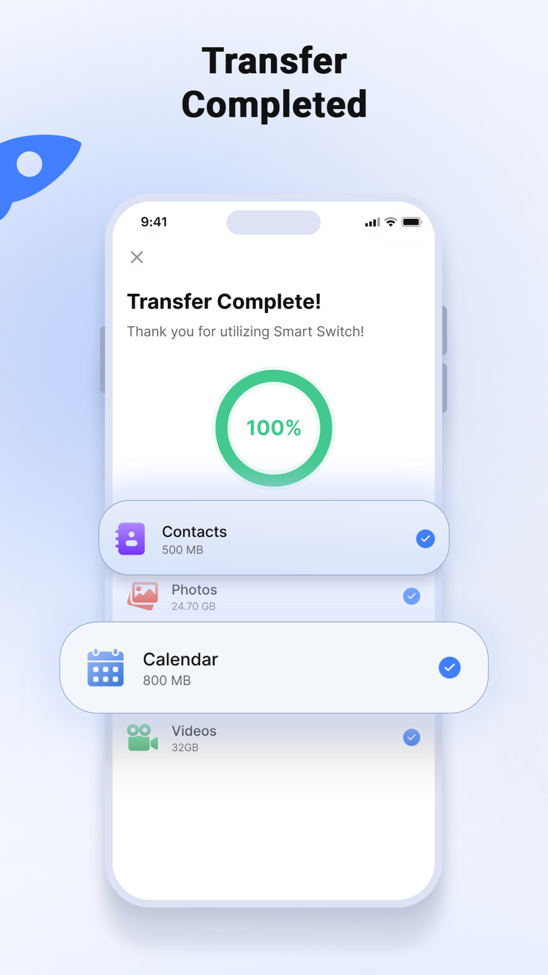 - Once you select everything you need to transfer, the app shows you an estimated completion time. - Shows your transfer history in one place.