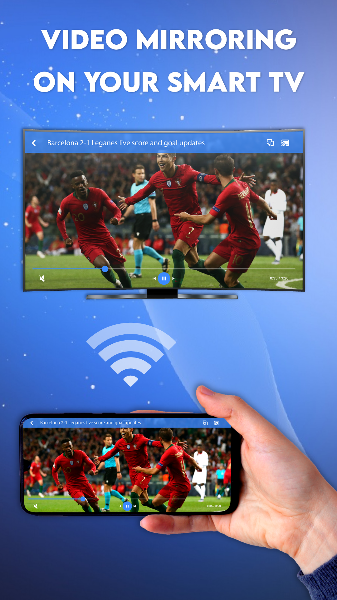 Smart View Screen Mirroring for all TV is a free app that connects your phone to TV. This Miracast wireless display app allows you to mirror your phone screen on smart devices like (Chromecast, Roku, LG) etc. The all-in-one Screen Mirroring app supports streaming devices like Amazon Fire TV, Fire Stick, Smart TVs, LG, Chromecast, Samsung, Sony, DLNA & Google Cast receivers, Roku TV, etc., providing a smart view of your phone screen in high quality and real-time speed.