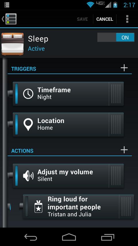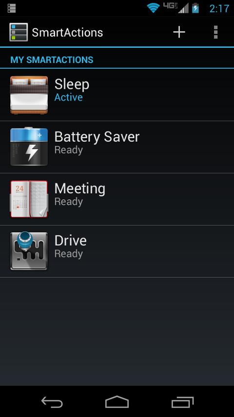 Whether you want to extend your battery life or get help staying focused on the road when you’re behind the wheel, SMARTACTIONS can help. With this unique app, you can mastermind your phone settings, so your smartphone is optimized for your life. The app is also intuitive. SMARTACTIONS will offer up suggestions for different settings changes based on how you use your phone. *Extend your battery life* The SMARTATCTIONS app has different battery saving rules that keep you in charge of your charge. The Battery Extender rule, for example, recognizes when your phone is sitting idle and conserves power. Don’t worry—calls and texts always come through. And, the Low Battery Saver rule will pay attention to how much charge your battery has, and change settings to conserve what’s left. *Location, location, location* SMARTACTIONS can make changes based on where you are. When certain Wi-Fi connections are recognized, SMARTACTIONS can make changes based on that location. For example, arriving at your office could prompt putting your ringer on silent and pulling up that productivity app that really gets things done. *Completely custom* It’s your phone; customize it to fit your life. Do you like your display turned down and your ringer turned up when you get home? SMARTACTIONS can remember that and do it for you. Or, maybe you like to see maps and GPS when you step into your car. Yep, SMARTACTIONS can help there too. *Intuitive* SMARTACTIONS is intuitive. As you go about your day, it learns how you interact with your phone and makes suggestions that help you spend less time managing your smartphone and more time enjoying it. *You’re in control* This app will offer to help you and make suggestions for rules—but it will never make changes until you say so. For additional support, visit the Motorola support forums at: http://www.motorola.com/forums/smartactions