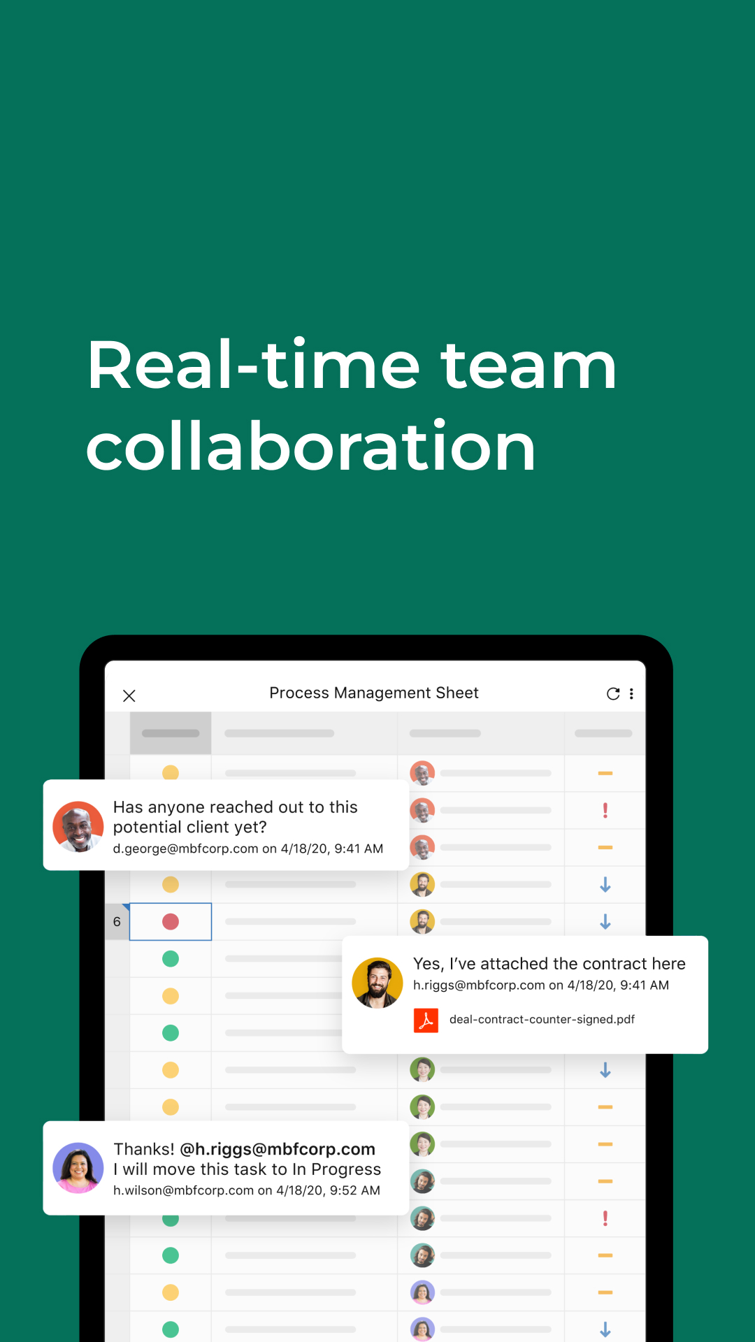 Improve project visibility and collaboration with shared sheets, comments, and edit access anywhere.
