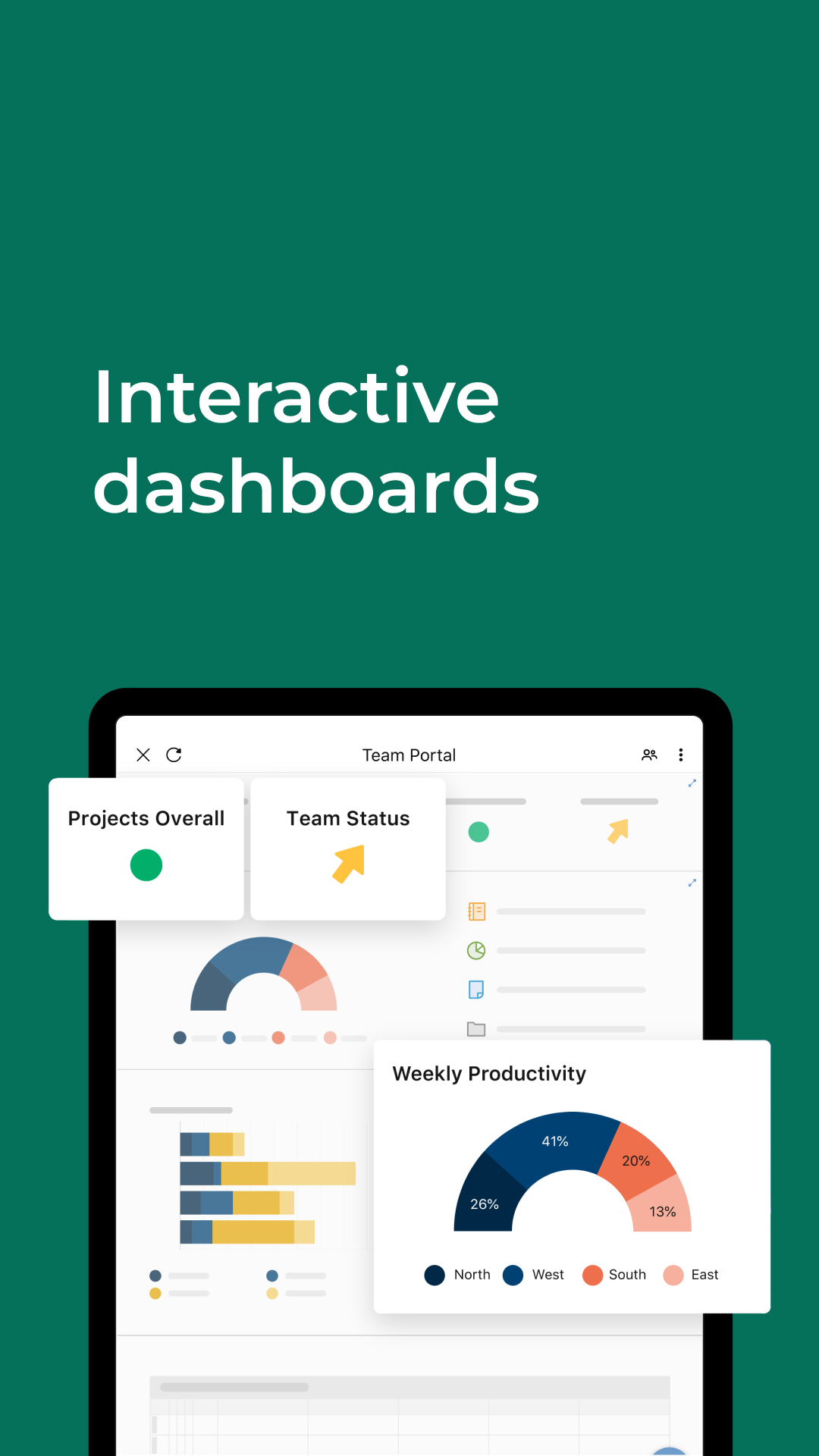 Use dashboards to showcase sheets, reports, charts, and forms and visualize tasks clearly.