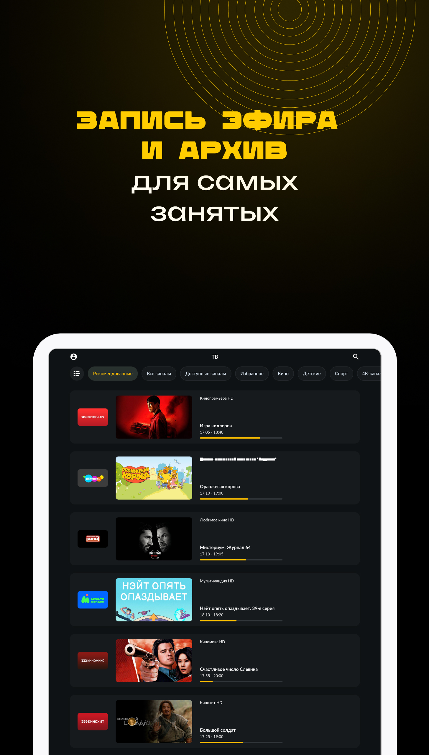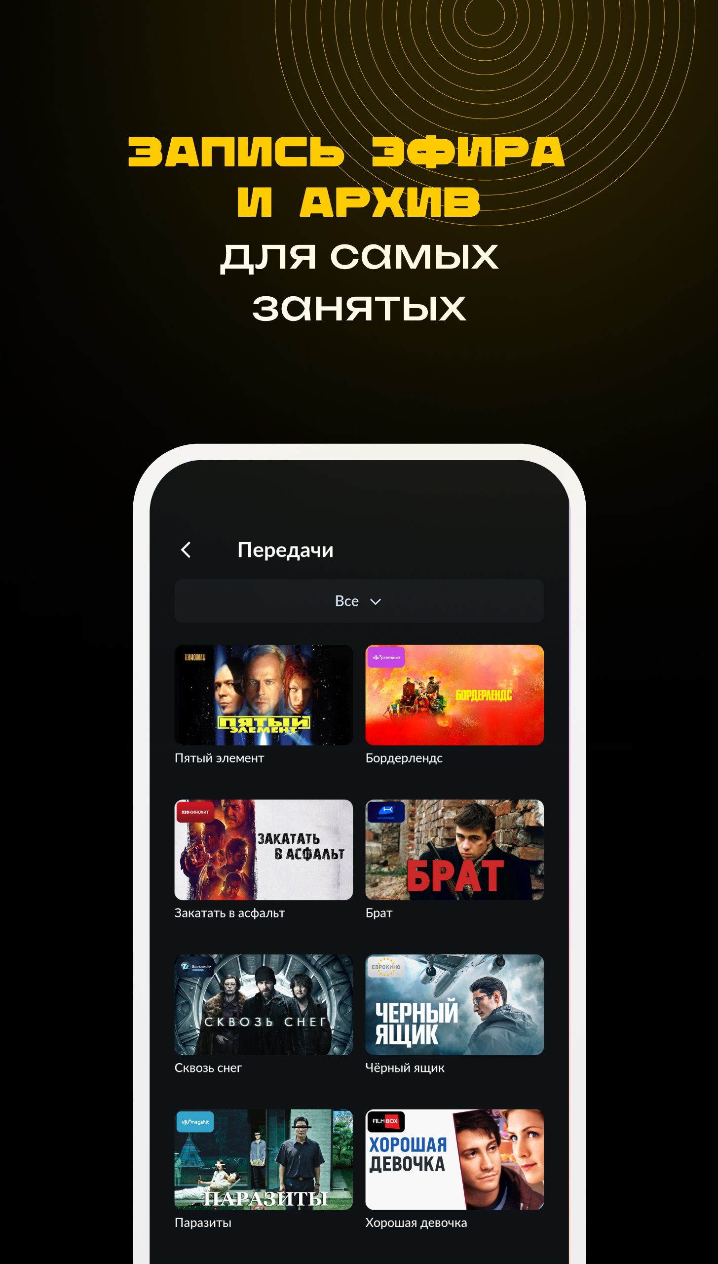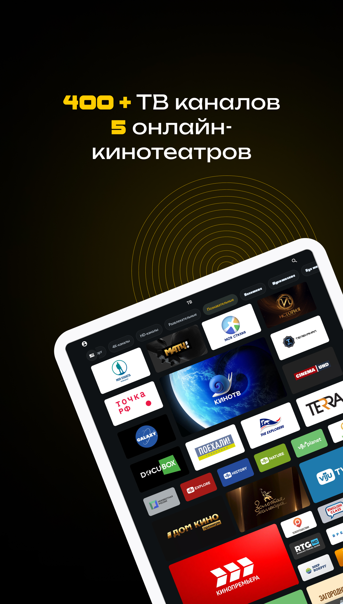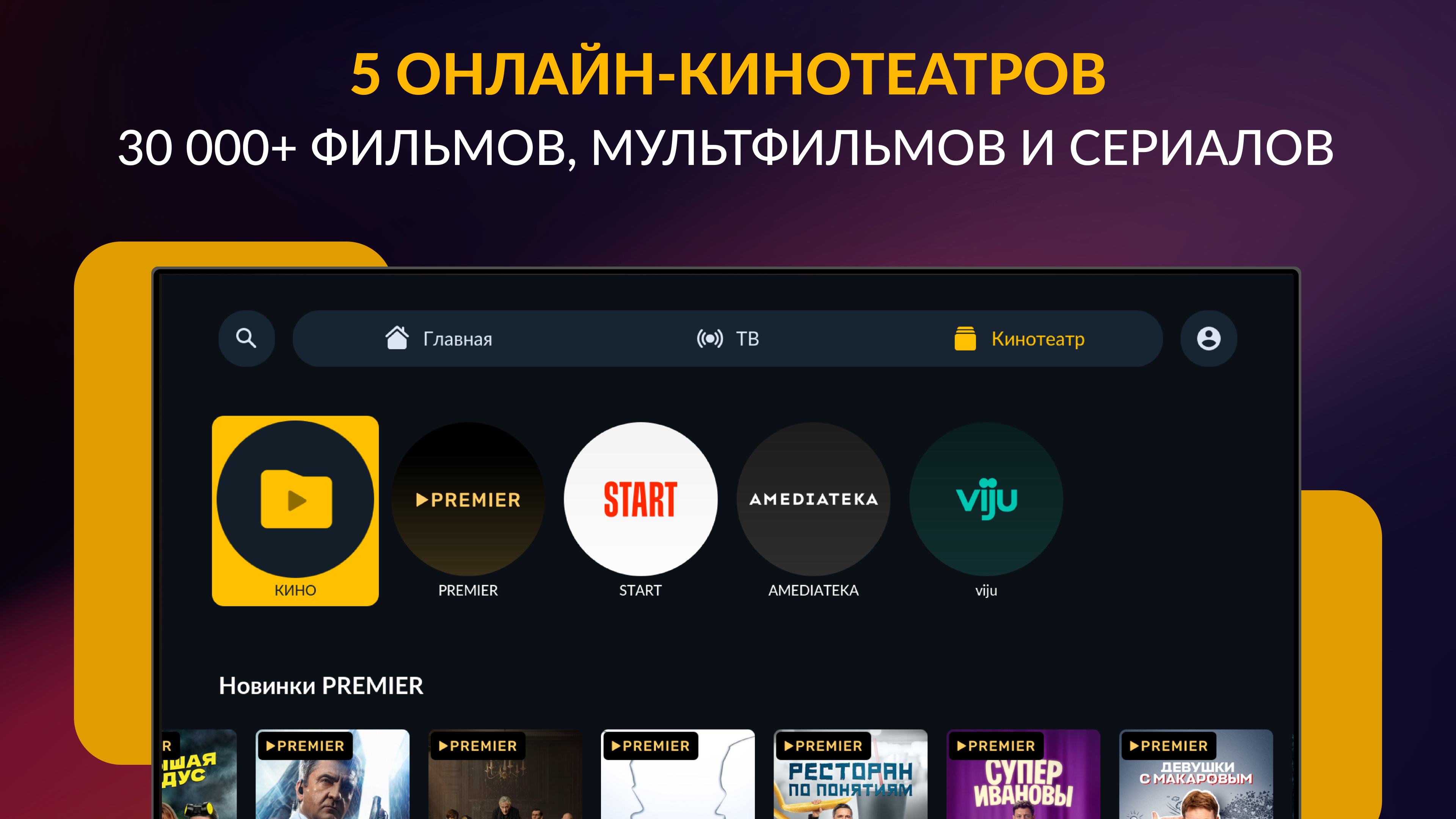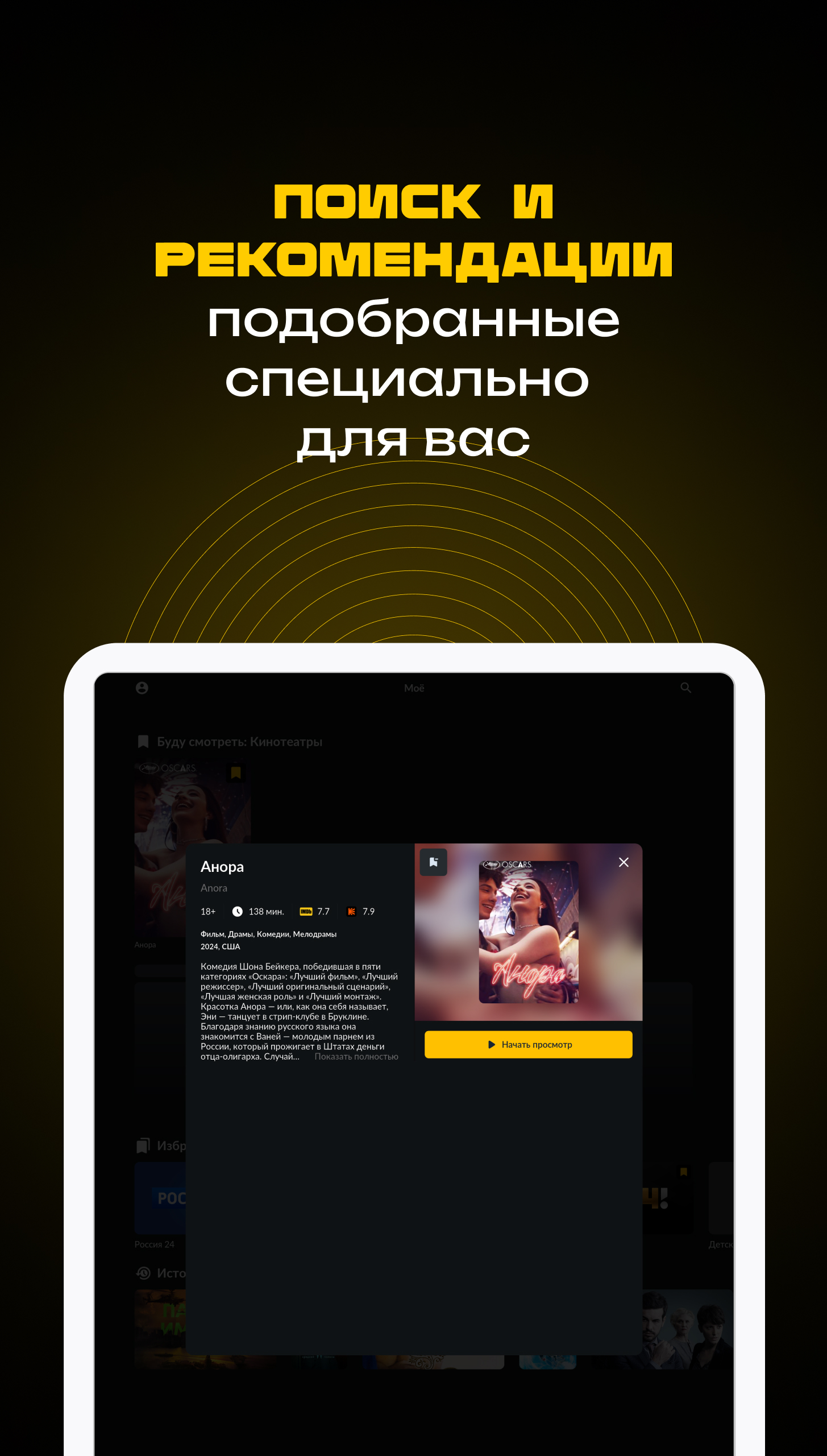 In one app, Smotrеshka offers four streaming services and more than 350 TV channels. Watch PREMIER, START, Amediateka and viju, along with movies, football, cartoons, and series on up to 5 devices, anywhere with Internet access. The app is available on smartphones, tablets, Smart TV, web browsers, set-top boxes, including Apple TV, and supports AirPlay and Google Cast. Smotreshka features over 20,000 movies, series, and cartoons from time-tested classics to the most recent releases from 4 popular streaming services. The Cinema tab is a constantly updated collection of extraordinary films. Looking for a movie or TV show? End-to-end search in the app makes it easy to find the content you need. TV channel broadcasts are sorted by genre and type and archived for up to 14 days. Pause, hold, or set a reminder to watch a show later. Add a channel to "Favorites" for quick access. Based on your TV profile, the personalized recommendation system suggests similar-themed channels and programs. Most of 350+ channels are available in HD and 4K. Home Internet, 3G/LTE, or Wi-Fi are all suitable - bitrate auto-tuning enables the app to be used even with a slow Internet connection. The terms of the user agreement can be found here: https://smotreshka.tv/user_agreement