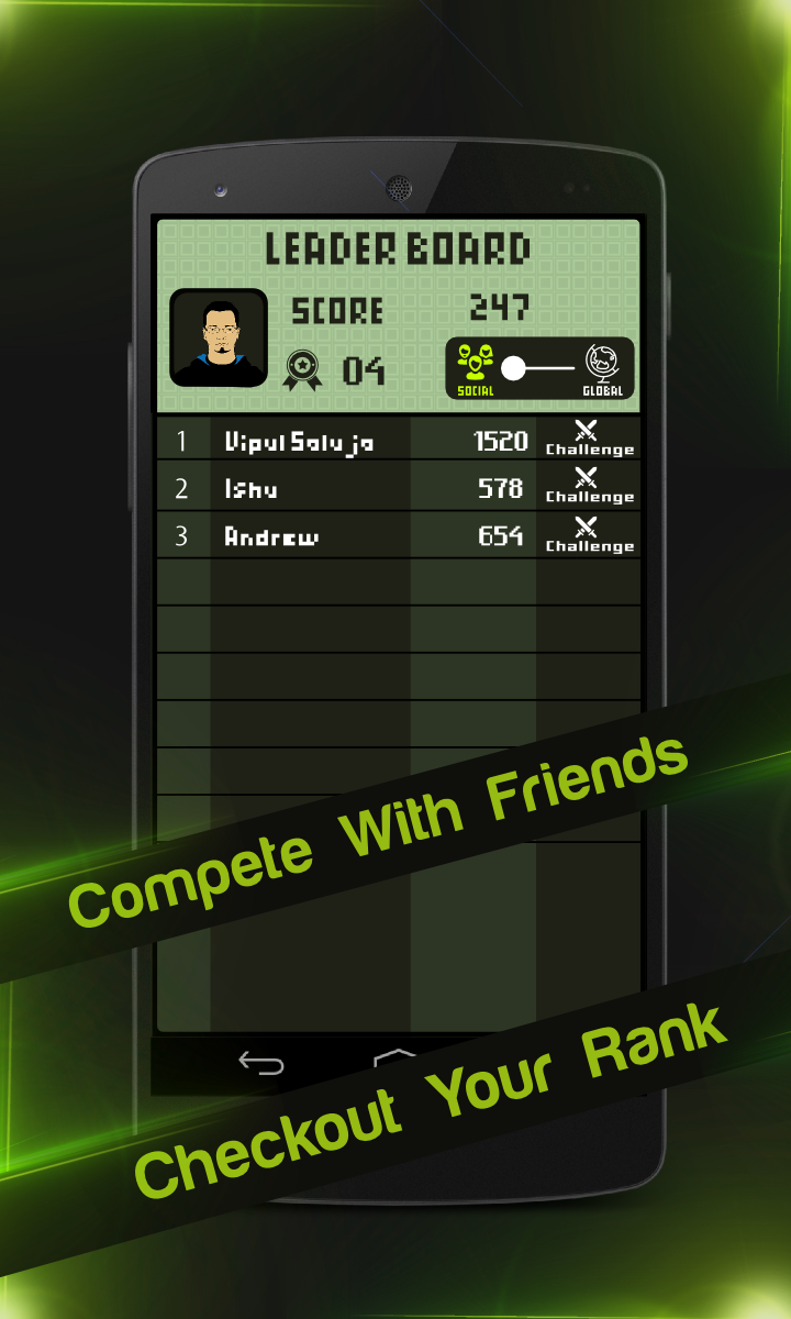 # Leaderboard: Compete with your friends over Facebook and checkout your rank globally & within your friends.