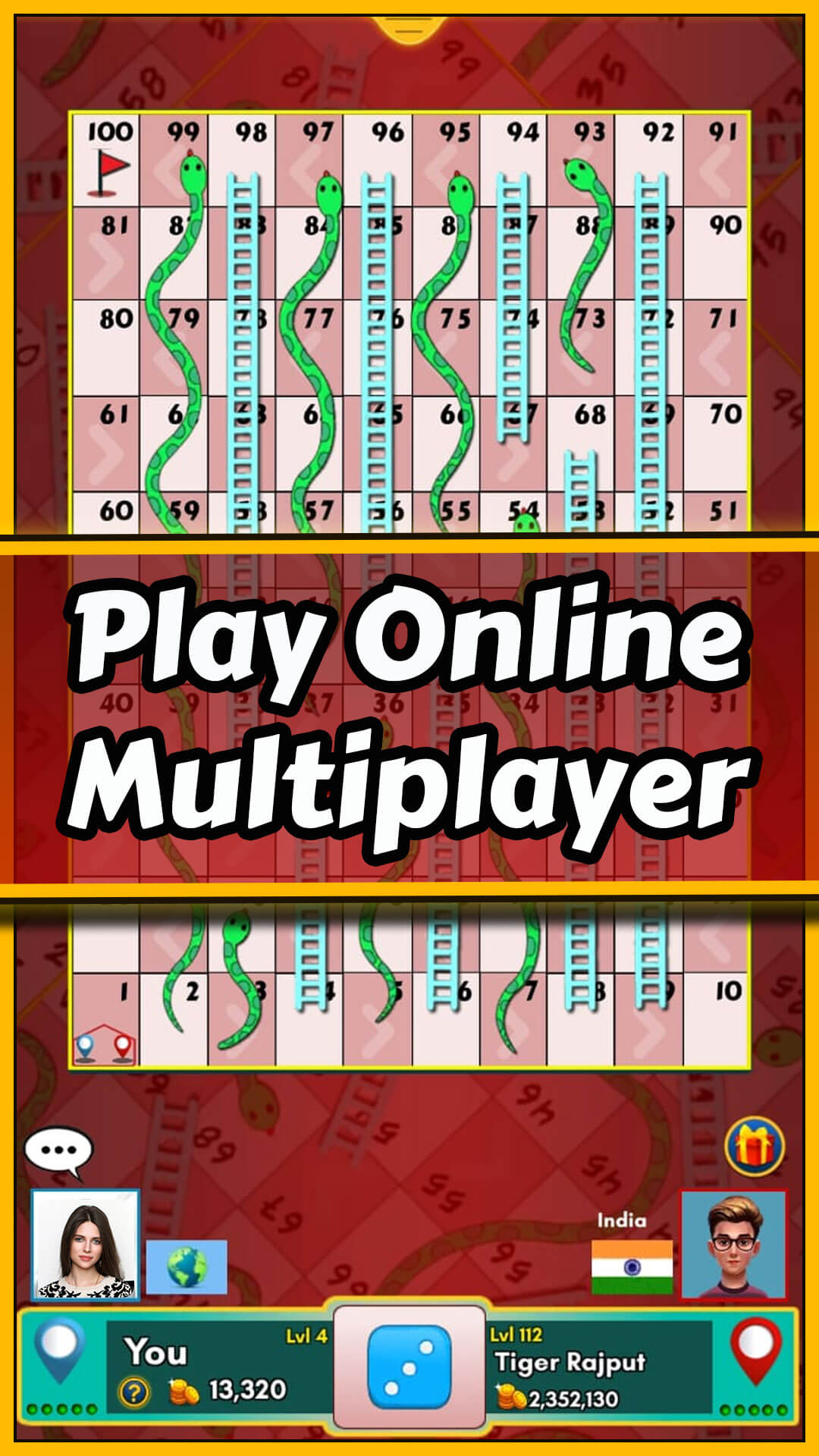 🐍🎲 Snakes and Ladders: Snake Game – Classic Board Game by Ludo King Developer Experience the ultimate Snakes and Ladders game — a fun, exciting, and nostalgic dice board game perfect for family and friends! From the creators of Ludo King, this classic board game brings your childhood memories back to life in a modern, colorful, and feature-packed way. 🎯 Play the Timeless Classic You Love Did you grow up playing board games like Snakes and Ladders with your family? This online and offline board game offers the same joy and thrill — roll the dice, climb the ladders, and avoid the snakes! Whether you call it Snake Game, Chutes and Ladders, Saap Sidhi, or Sap Sidi, this traditional game is loved by all generations. 🕹️ Game Modes Choose how you want to play: 🌍 Online Multiplayer – Play Snakes and Ladders with players around the world. 🤖 Vs Computer – Challenge the smart AI anytime, anywhere. 👨👩👧👦 Pass and Play (2–6 Players) – Enjoy with friends and family on a single device. 🧑🤝🧑 Play with Friends Online – Create private rooms and invite your friends for real-time matches. 🎨 Beautiful Game Themes Customize your experience with unique and colorful themes: ✨ Disco / Night Mode 🌿 Nature 🏺 Egypt ⚪ Marble 🍬 Candy ⚔️ Battle 🐧 Penguin 🎲 Easy to Play – Hard to Stop! Roll the dice, move your token, and reach Square 100 before anyone else to win! Land on a ladder and climb up, but watch out for the sneaky snakes that send you back down. 💫 Features ✅ Fun and family-friendly gameplay ✅ Play offline or online – anytime, anywhere ✅ Multiple themes and boards ✅ Supports up to 6 players ✅ Smooth animations and intuitive controls Join millions of players and relive the classic Snakes and Ladders experience on your mobile device. It’s simple, fun, and endlessly entertaining Snake game! 🎉 Download Snakes and Ladders: Snake Game — roll the dice, climb to victory, and become the King of the board!