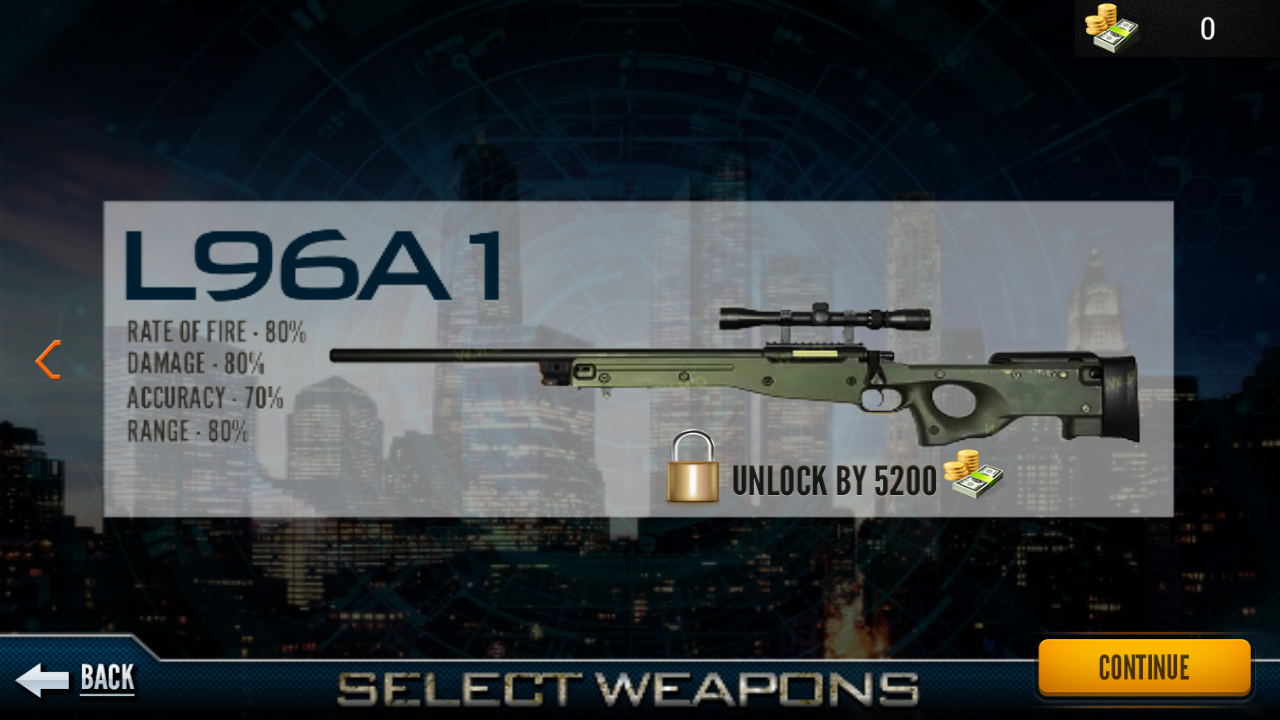 Mission description is given at the beginning of each mission of Sniper 3D Kill Shot, use this description carefully to identify the high risk target and eliminate it. Use your Sniper Scope to get the clear view of your red target, aim it perfectly and snipe him down with clear shoot. Avoid killing local people because it will result in mission failure. If you forgot to upgrade your weapon to play the next, just hit that label "upgrade your weapon" in game play and buy required weapon to complete your mission.