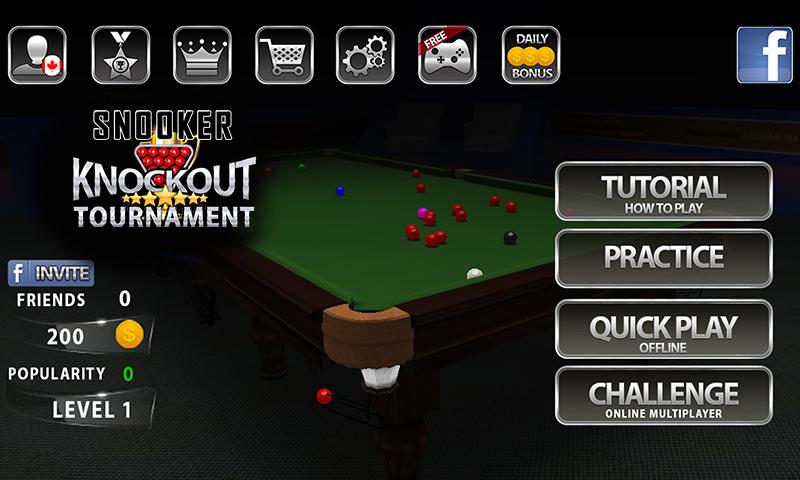 - Snooker knockout tournament mode!