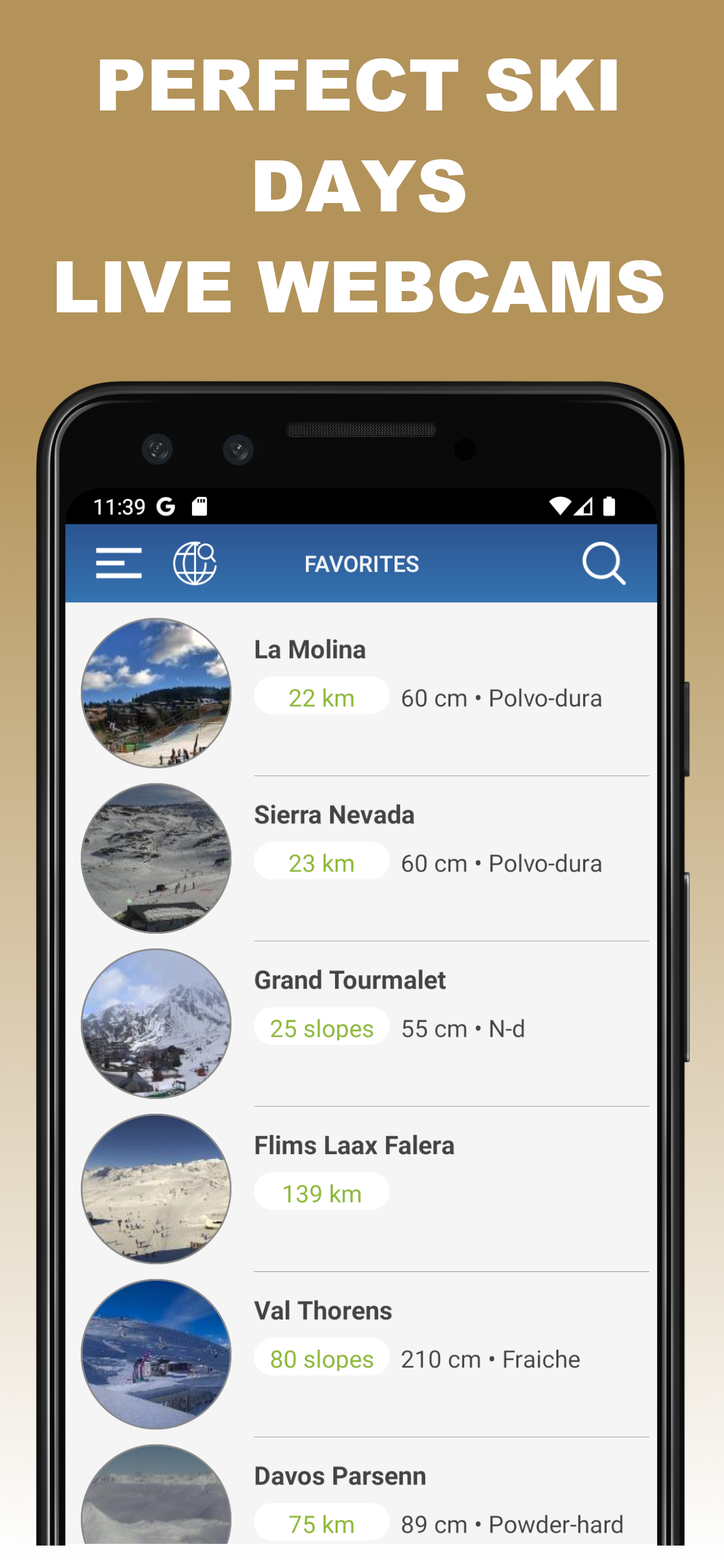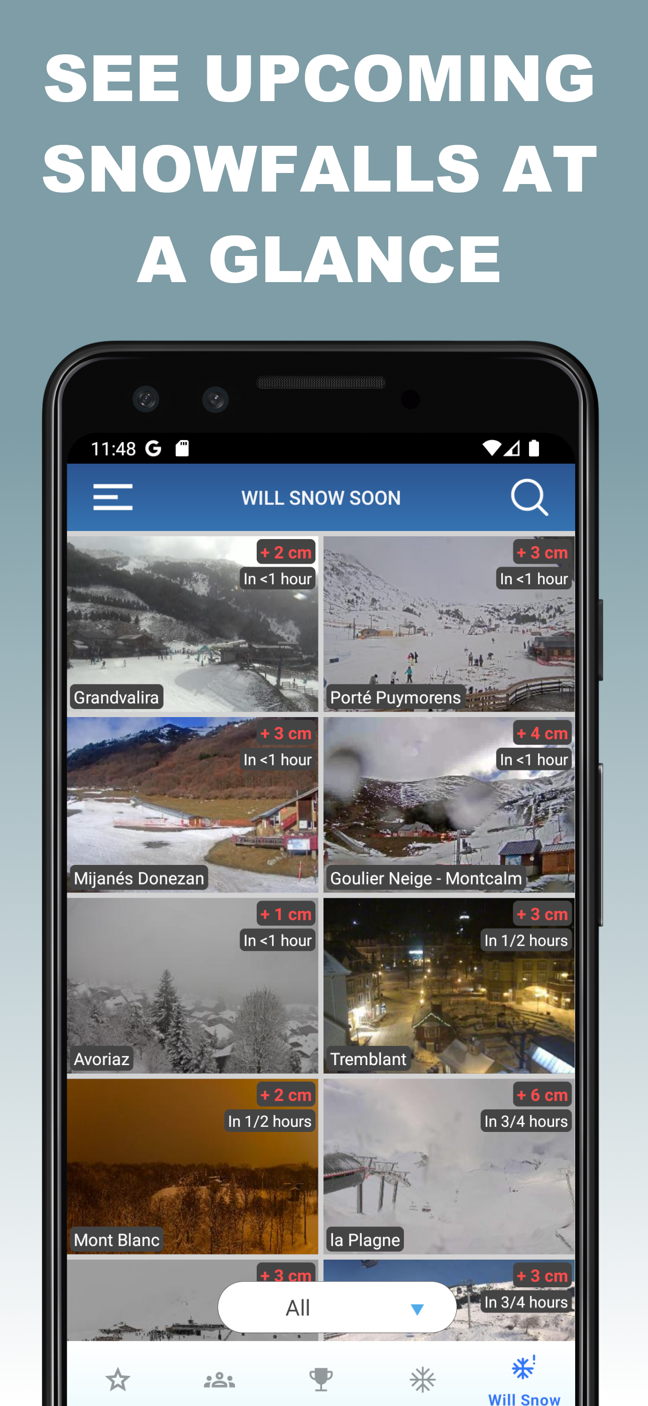 Be the first to know when it's snowing: turn on notifications for your favorite ski resorts, check out live cameras, and never miss a snowfall!