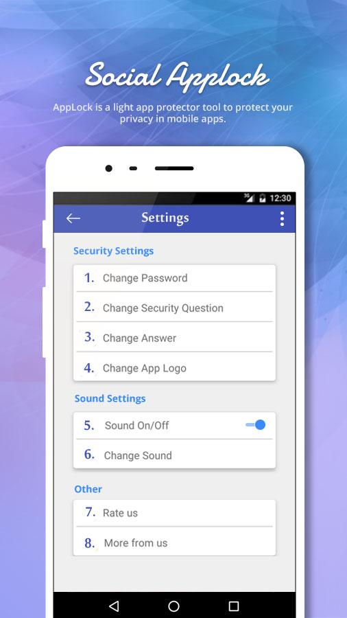 Applock prevents others from seeing your privacy and sensitive application. Applock for Android is Powerful Applock & Privacy guard! Smart Applock is lite, easily and full protection app for your phone. Give your phone 360° security protection and Amazing secret Diary. Free Applock is very easy and convenient to use. Ensure Security Applock! It's easier for you to protect your private data with the smart AppLock ! With AppLock ,nobody can open the app without secure and complex password. APPLock , a must-have privacy guard ! In Android Applock, so many Themes available. you can choose best PIN or Pattern lock themes and Especially the PIP style , which is the most Famous theme in this year. you can hide your photos, gallary, messages and personal data by Amazing Secret Diary. To be your privacy guard ! All the privacy guard functions for you to ensure security and keep your privacy safe. Stylish AppLock has random keyboard and invisible pattern lock. No more worry people may peep the pin or pattern. More safe! With AppLock Security Protection, your privacy is well protected with password, pattern lock. Lock Guard can lock Facebook, Whatsapp, Gallery, Messenger, Snapchat, Instagram, SMS, Contacts, Gmail, Settings, incoming calls and any app you choose. Prevent unauthorized access and guard privacy. Ensure security. Also Available Amazing and Beautiful Themes for you, Make a Special lock screen wallpaper with your photos through The Advanced App lock or using Android App lock. AppLock is a real AppLock Pro ! Very Popular and free version of android applock or Security Guard Applock for android which gives unlimited security on your android device. Make a Special Safe Guard for your android device. Supported Android Versions: android 4.0 + kitkat, android 5.0 + lollipop, android 6.0 + Marshmallow, android 7.0 Naugat etc - Made with Material designs for screen locker app. - applock theme feel you like unique lock app screen. - create best way to protection like Pin code(Passcode) Lock, Pattern Lock, Knock Lock etc. - Enjoy with best app lock with stylish and professional design. - Having features based on gallery vaults and get privacy lock and protect secret data. - Password Lock with best options. Locks options 1) Password Lock :- Using password App Lock you can enter any encrypted password which can help you to make it more secure for future and unknown person. 2) Pattern Lock :- Complex Pattern App Lock Which never open without your permission to use. 3) Knock Lock :- More Security by knock applock for android, modern lock with new knock pattern for android theme. THE ALL NEW KNOCK LOCK IS HERE AND IS COMPLETELY FREE Steps 1) Give Appropriate Permission from your device for applock. 2) Set Security password only in case forgot password. 3) Just use and enable checkbox which you dont want to open others from application list. 4) Hidden data will not visible to gallery but when you unhide then can find it from UNHIDE folder in your internal folder. Features Of Applock => Master Knock lock for android. => Pinlock & Pattern Lock. => Change Logo of app feature. => Properly Works on every device with faster applock service. => Have beautiful themes available for you. => Can change & Set among 6 themes. => Prevent Unauthorized Access => Special Locks available like Pattern Lock & Password Lock. => Mobile gallery Vault Security available. => Forgot Password through you can recover password. => Clean Mobile Applock. => Prevents others from using your device => Free Applock for android phone. Note: If you enjoy using Applock - Knock Lock, please leave us a 5 Star Review on the Play Store :)