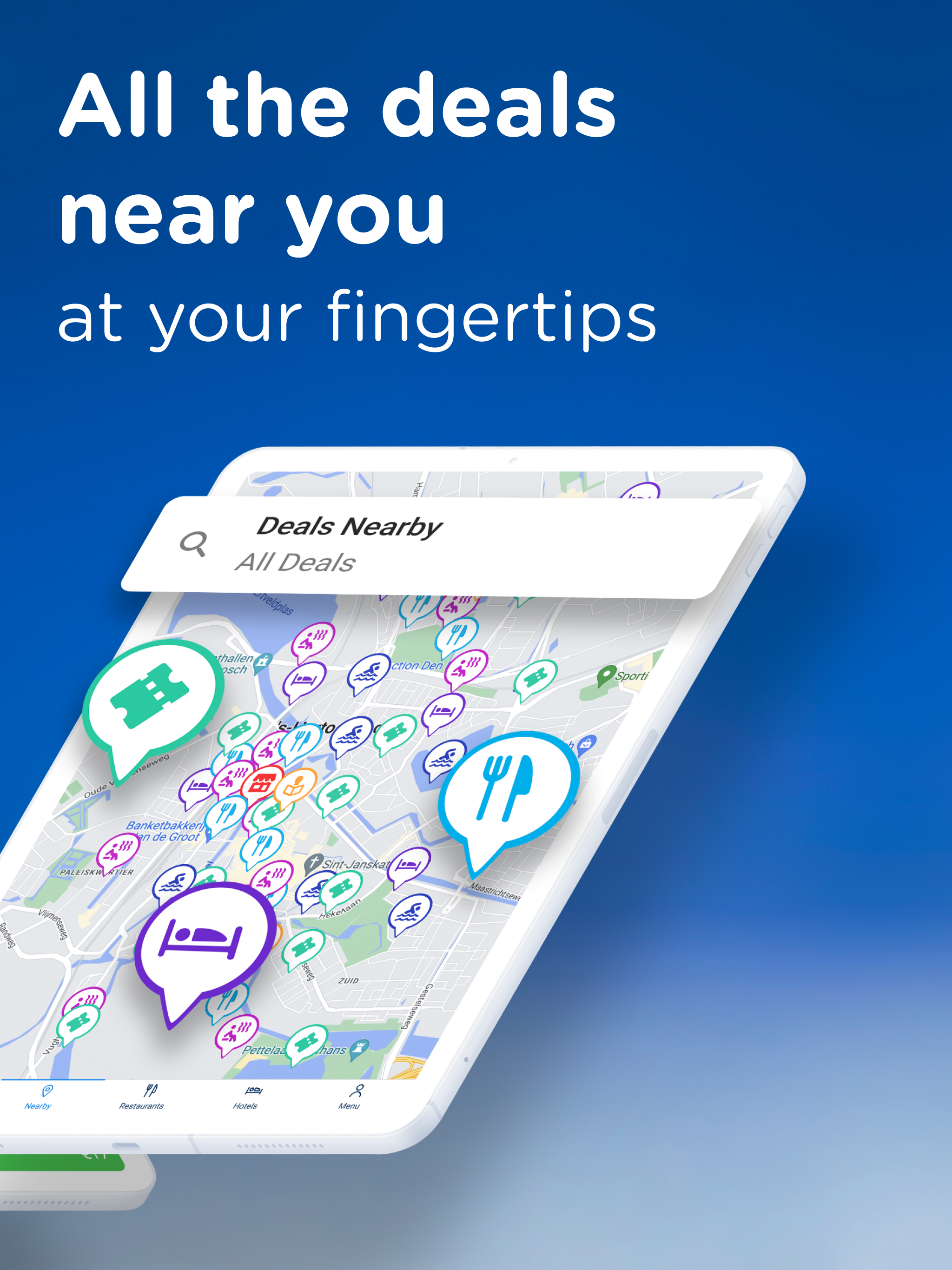All deals are at your fingertips:find deals in your area and discover what other cities in the Netherlands, Belgium and Germany have to offer!