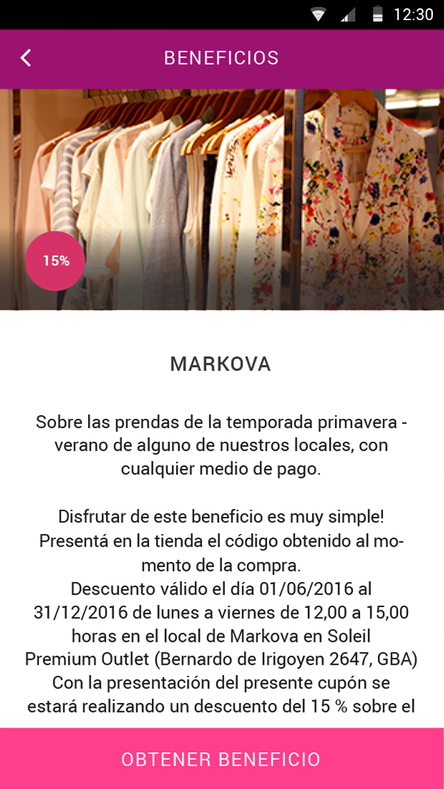 Disfrutá todos los días los mejores descuentos en las mejores marcas. Recibí cupones de hasta un 70% de descuento todos los días en: 47 STREET - ADIDAS - AKIABARA - ATOMIK - BABY COTTONS - BENSIMON - BILLABONG - BOWEN - BOATING - CARA CRUZ - CARO CUORE - CHEEKY - CITY KIDS - COMO QUIERES QUE TE QUIIERA - CONVERSE - CRISTOBAL COLON - D 42 - DEXTER - GRIMOLDI - GRISINO - INDIA STYLE - KEVINGSTON - KEY BISCAYNE - KOSIUKO - LA TIENDA 326 - LADY STORK - LA MARTINA - LEGACY - LEVI´S STORE - M51 - MARKOVA - MEGASPORT - MIMO & CO - MUAA - NARROW - NAZARIA - OLD BRIDGE - ONA SAEZ - OWOKO - PARUOLO - PAULA CAHEN D´ANVERS - PORTSAID - PROTOTYPE - PRUNE - PUMA - RAPSODIA - REVER PASS - RICKY SARKANY - SIAMO FUORI - SIMMONS - STOCK CENTER - SWEET - SWELL - TASCANI - TODO MODA - TUCCI - VER - WEAK MEAK - XL - YAGMOUR - ZHOUE - COSTUMBRES ARGENTINAS - SOBAR GOURMET - LA BRIOCHE DOREE - ABERDEEN ANGUS - BURGER KING - MOSTAZA - AVE CAESAR - MC DONALD´S - FREDDO