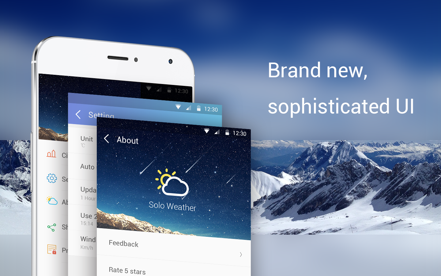Solo Weather (Package Name: home.solo.plugin.weather) is developed by NewBorn-Town and the latest version of Solo Weather 1.2.9 was updated on January 7, 2016. Solo Weather is in the category of Weather. You can check all apps from the developer of Solo Weather. Currently this app is for free. This app can be downloaded on Android 4.0.3+ on APKFab or Google Play. All APK/XAPK files on APKFab.com are original and 100% safe with fast download.