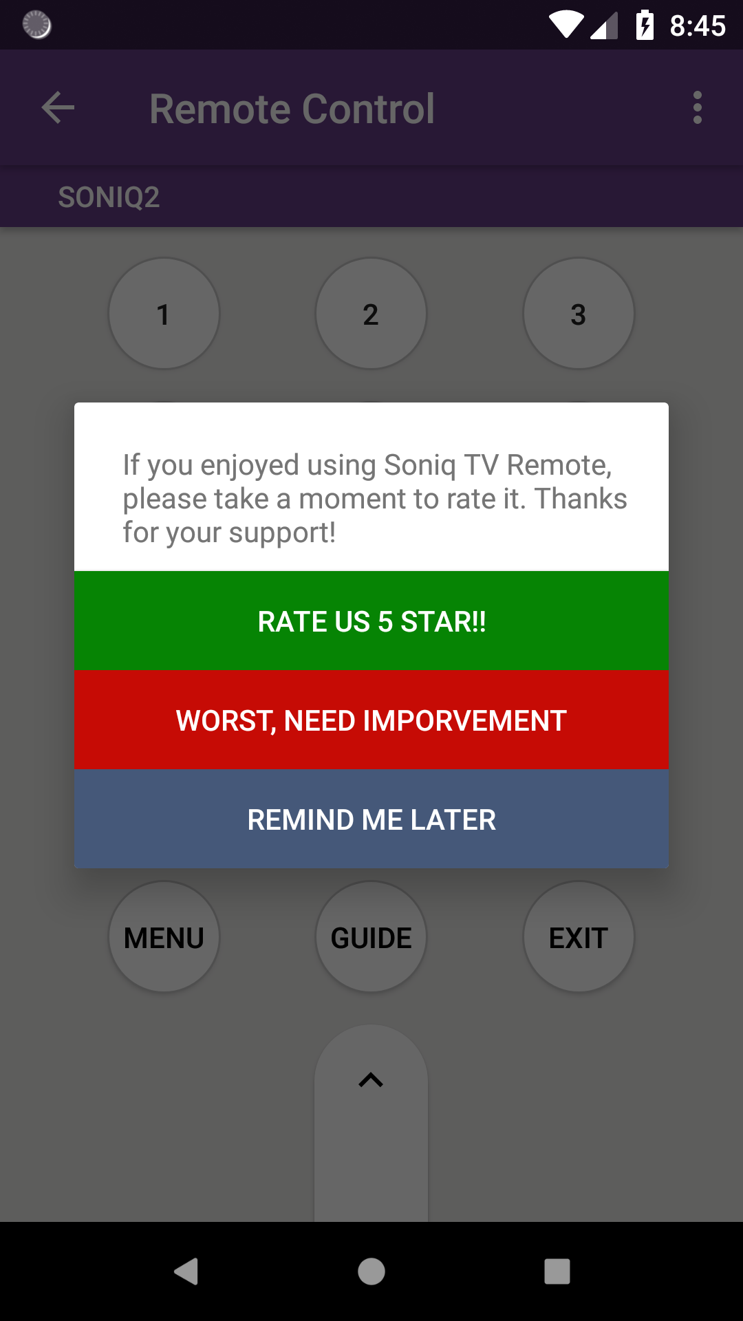 Soniq TV Remote