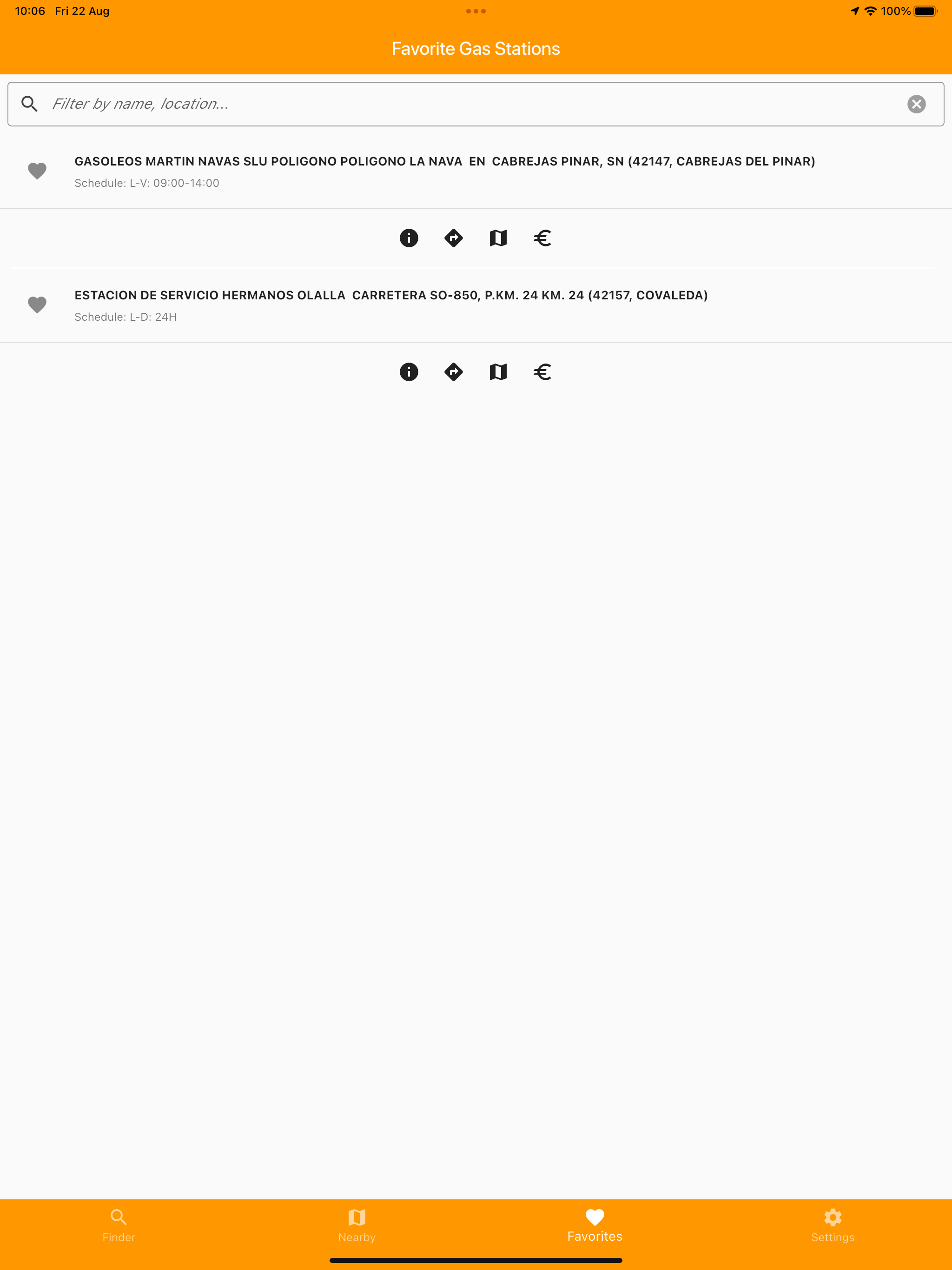 The easy way to know the prices of each service station in Spain. The app allows you to save your favorite service stations. To help you find the nearest service station requires GPS activation. "Go" mode compatible with most car navigation applications.