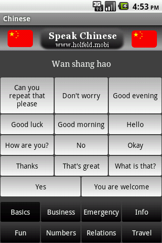 Speak Chinese has all the phrases recorded for you. Accessible with just one button click. Anytime! Anywhere!