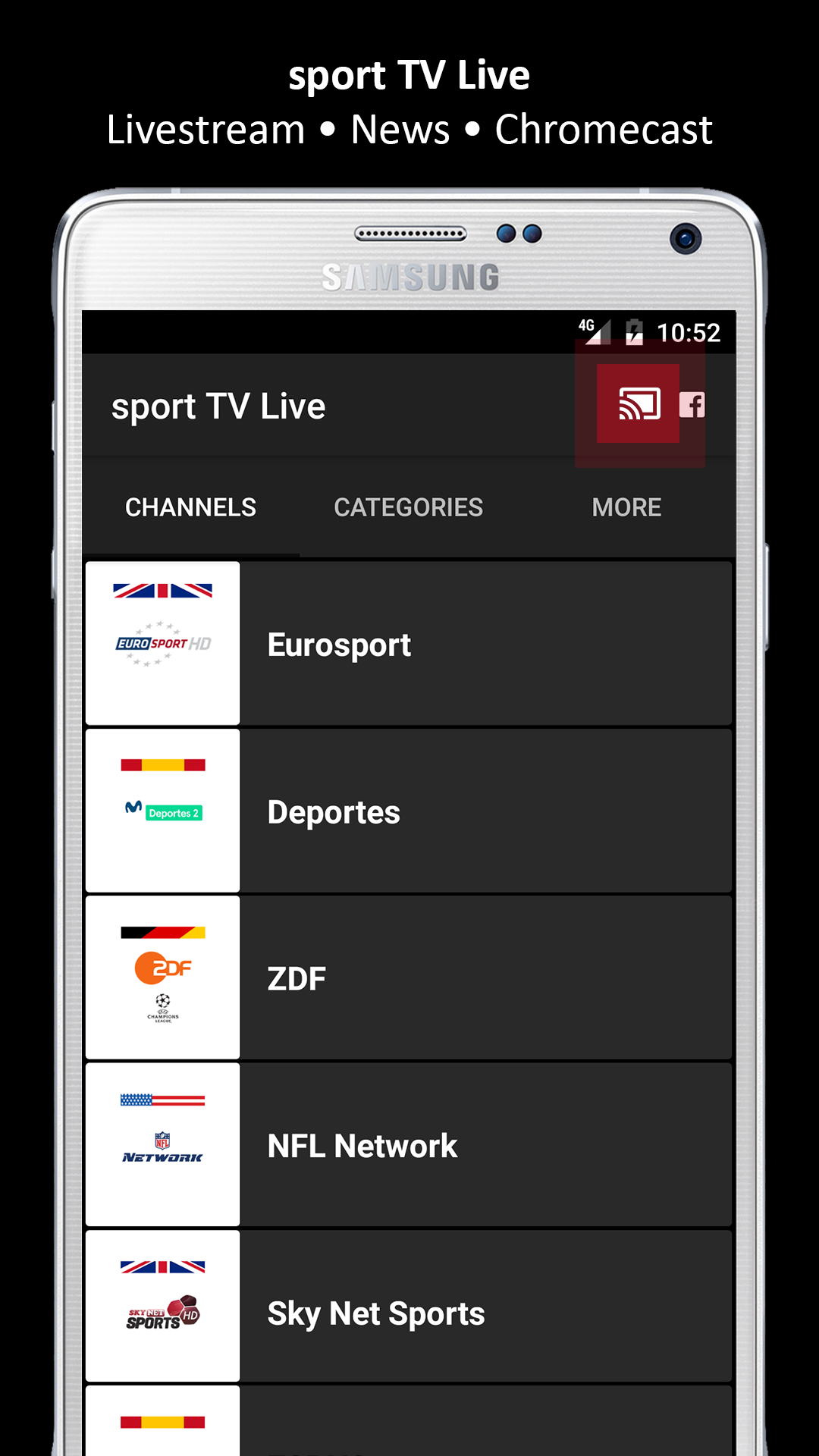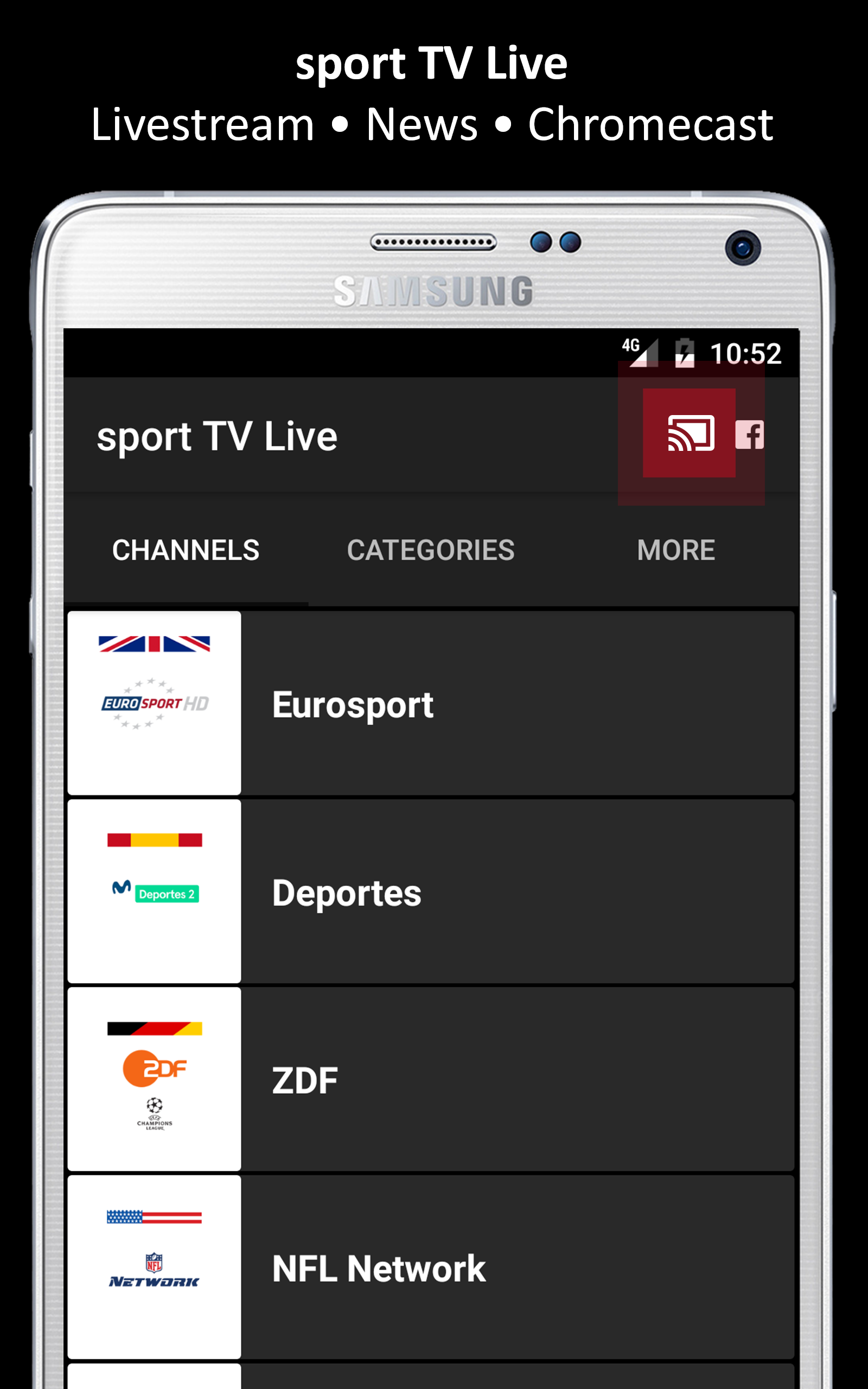 ▩ Added fullscreen button while playing a video ▩ NEW Design and Functionality ▩ Chromecast Support ▩ Reduced App size ▩ App is much more faster than older versions ▩ Thanks for using sport TV Live app