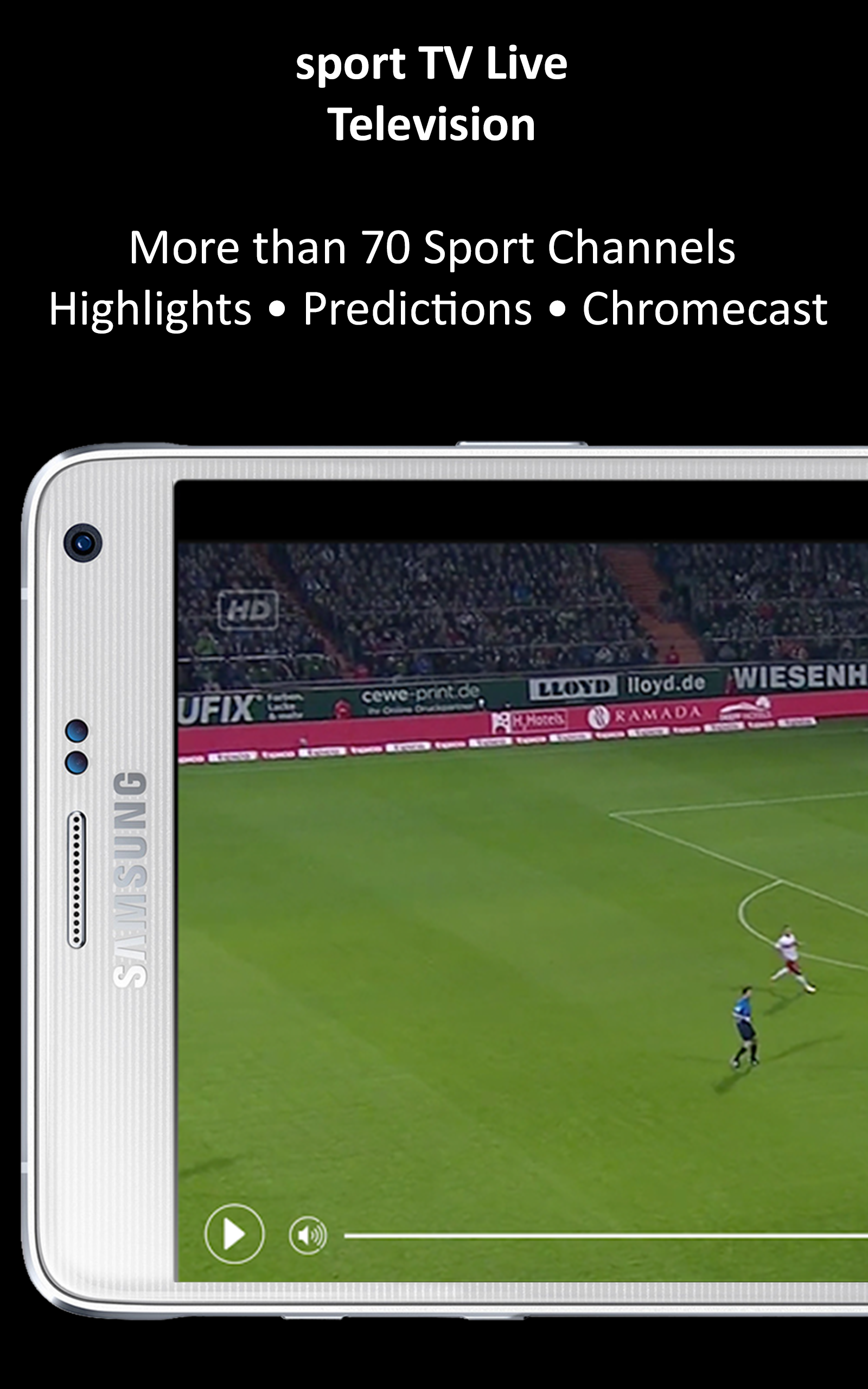 With the Sport Live TV - Football Live Television App you can watch sport games live of all country Leagues, Europe, USA Sport, the Europa League, the Champions League, Asian Sport, Euro & World Cup Qualifications and much more on your mobile device for FREE of charge and without registration! ▩ Highlights & Channels • Sky Net Sports, ESPN, Super Sport, Silk Sports, Sport Klub, Dubai Racing, Eurosport, Russian Sport, Motor Sports, NFL Network, Pac 12 and more... • More than 70 sport stations are currently included • HQ Live TV: Look at selected games directly in the app ▩ Your feedback If you like it, please write a positive Review in Google PlayStore. Your suggestions please send us via Email: [email protected]