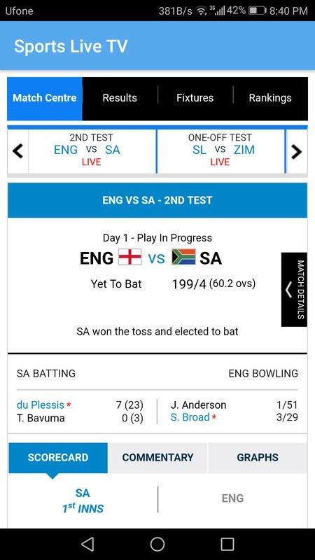 Watch Live PTV SPORTS, TEN SPORTS, GEO SUPER and STAR SPORTS on your favourite app Sports Live TV. Not only that it also provides latest cricket News, Live Scores, Results, Point Tables, Schedules, Match commentaries & Many More. Enjoy video highlights, real-time updates, live commentary, match chat and much, much more on Sports Live TV. LIVE TV CHANNELS: PTV Sports Ten Sports Geo Super Star Sports MAIN FEATURES: - Great UI Design - Get Live Score minute to minute updates - Push Notifications - Option to Share News - Match commentaries - No Stream will be available in "INDIA"