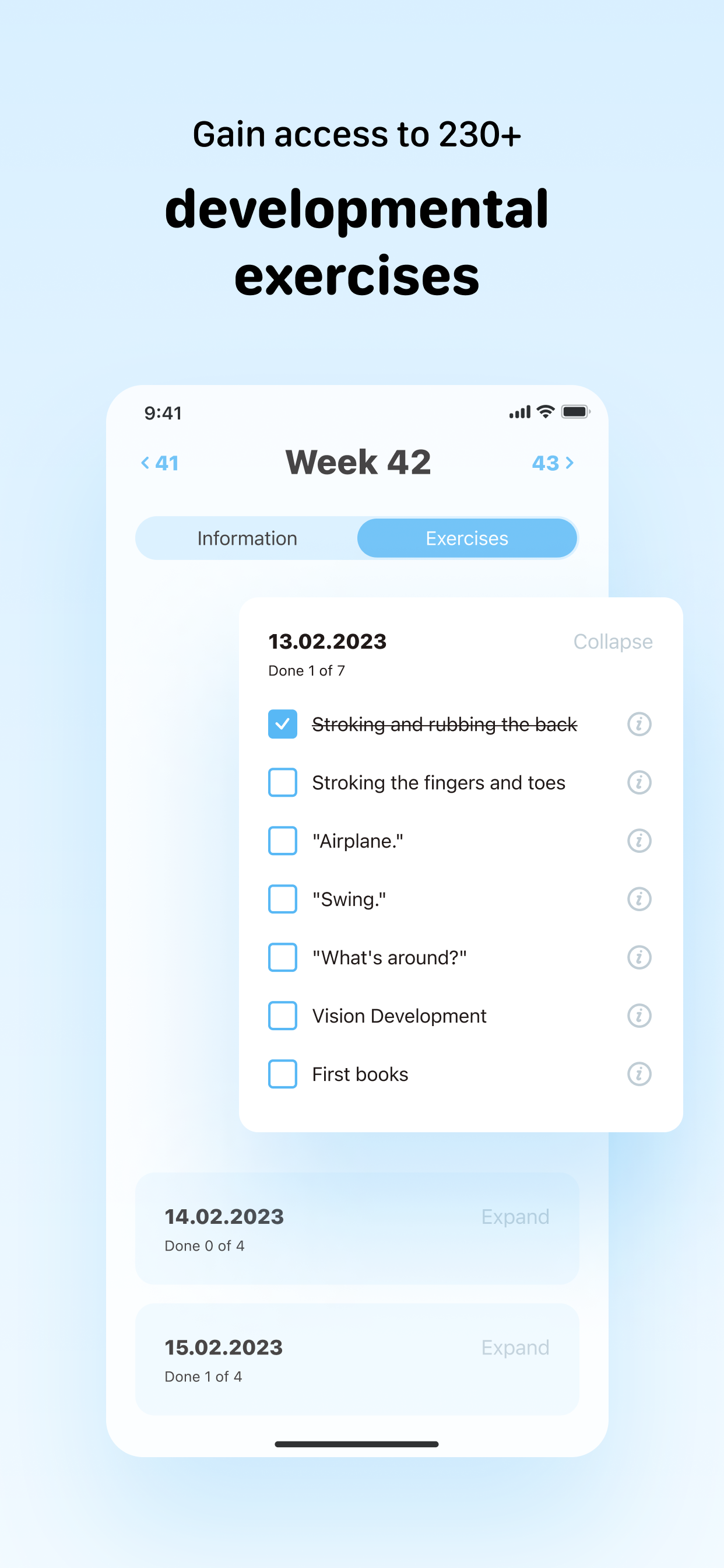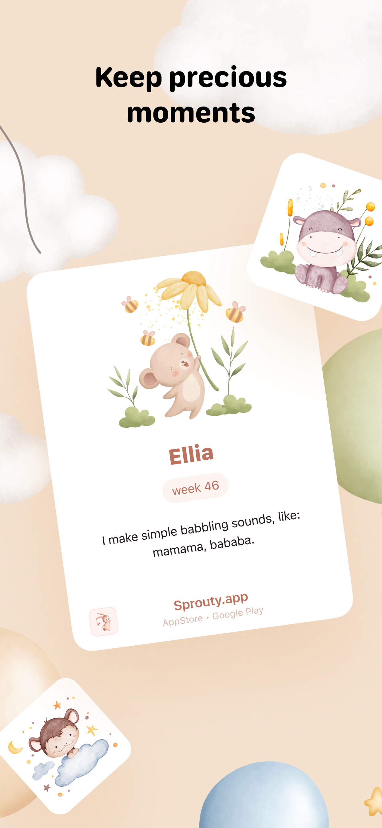 Sprouty – an essential app for parents of babies up to 2 years old. Track your child's growth crises week by week and check comments from pediatricians. Track your baby's sleep, feeding, diaper changes, pumping, and mood. Gain access to 230+ developmental exercises. Now you have an assistant on your journey to mindful parenting – trusted by 100,000+ moms and dads! Grow Together. Every Step of the Way. GROWTH CRISES CALENDAR From birth up to 2 years, a child goes through several growth and development crises. There's no need to be worried – this is a natural process during which the nervous system and brain develop, and the baby acquires new skills. However, during such periods, a child might become fussy and sleep poorly. We display growth crises in the calendar so you won't worry: together with pediatricians we explain what's happening with the physiology, motor skills, and speech development of your child up to 105 weeks inclusive. MEASUREMENTS OF HEIGHT, WEIGHT, AND CIRCUMFERENCES Fix key child's growth parameters – and track how they change. Check them with the World Health Organization's standards. TRACKERS FOR SLEEP, FEEDING, DIAPER CHANGES, PUMPING, AND CHILD'S MOOD Record all the important information about your child's daily schedule and routine – all in one app. 230+ DEVELOPMENTAL EXERCISES FOR EVERY DAY Tiger on a Branch, Maracas, More Noise, Miracles – these are not the titles of colorful children's cartoons, but engaging developmental exercises that you can perform with your child every day. JOURNAL OF PRECIOUS MOMENTS The first smile of your little one, the first tooth, the momentous first step – keep lovely memories not just in your heart. Record them in the app to create a cute video and share it on social media and messengers with family and friends. SUBSCRIPTION INFORMATION The subscription provides access to additional services in the app, becoming your daily go-to parenting resource. - A set of exercises for each day. They match the stage of your baby's development and don't take much time. The checklist format makes it easy to keep track of completed exercises. - Developmental norms: cognitive and psychological, speech and motor skills, teething. Checked by pediatricians and approved by the World Health Organization. Additional information: - Payment will be charged to your account after purchase confirmation. You could check the available subscription options in the app after its installation. - The subscription automatically renews. The renewal cost will be charged to your account 24 hours before the end of the current subscription, if auto-renewal has not been turned off. - You can easily manage subscriptions in your Google Play account settings – for example, turn off automatic subscription renewal right after purchase. FROM THE APP'S CREATOR Hello! My name is Dima, I am the father of a wonderful girl, Elli. When she was born, my whole world turned upside down. I learned about growth crises challenging for both the child and parents. To keep track of them, I created this app. Suddenly other parents started using it too. Today, thousands of moms and dads monitor their child's development with us – it's so inspiring, I'm so grateful. Thank you! Growing up is not easy! But we support parents and children every day on this exciting journey. Privacy Policy: https://sprouty.app/privacy-policy Terms of Use: https://sprouty.app/terms-of-service