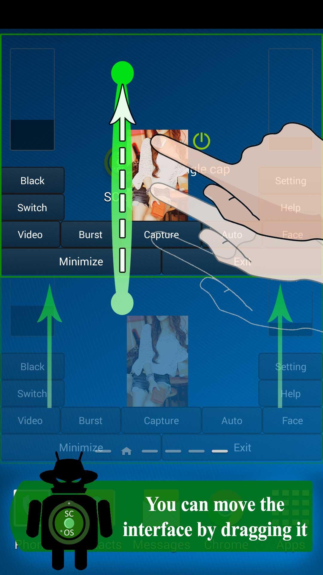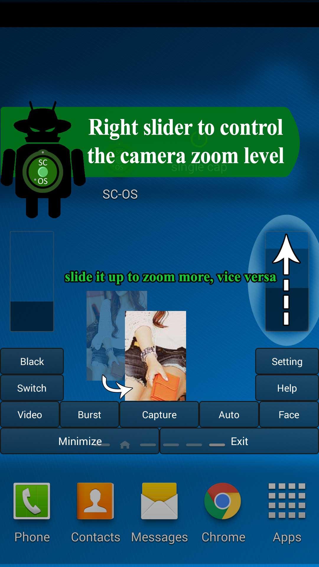 Spy Camera OS able to run in background, allowing you run any other app (e.g browser) while still capturing image/video in background.