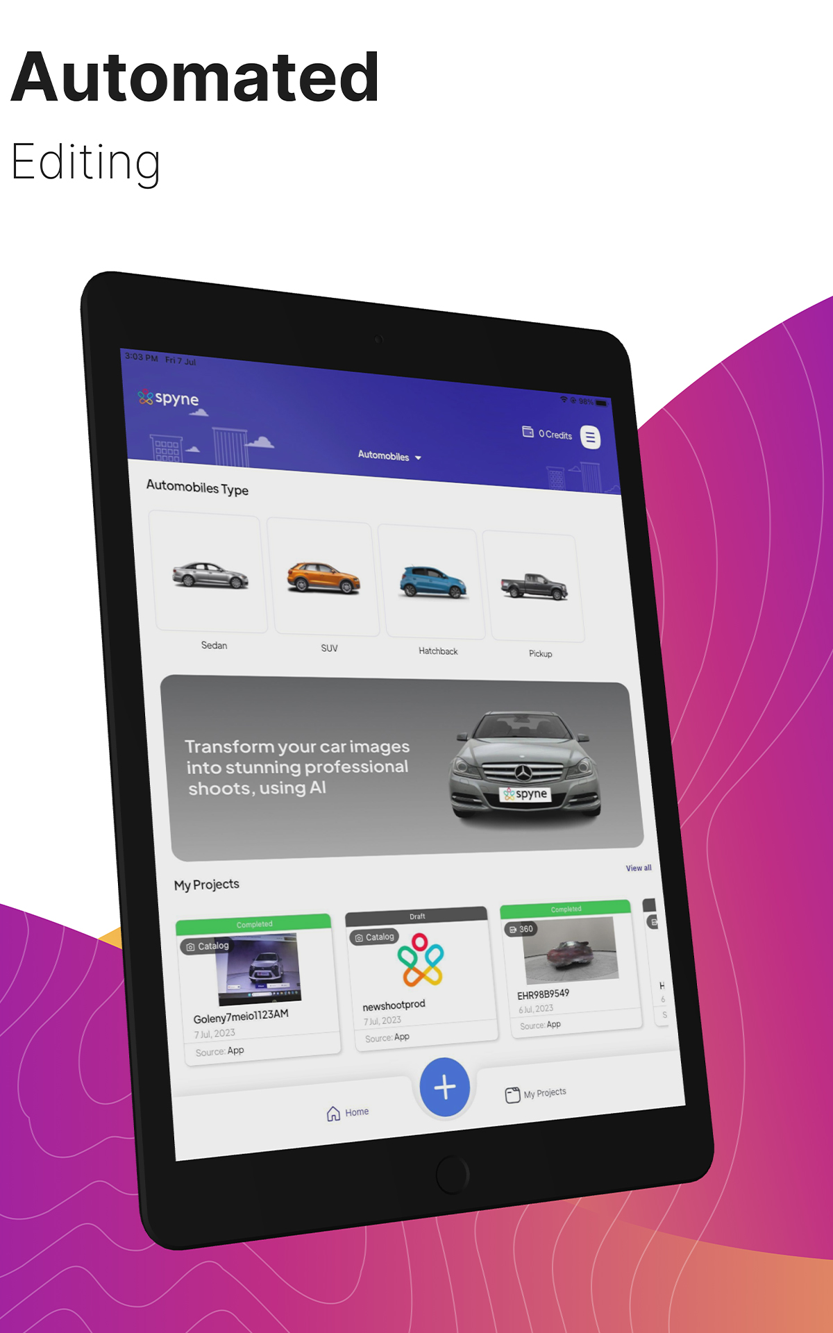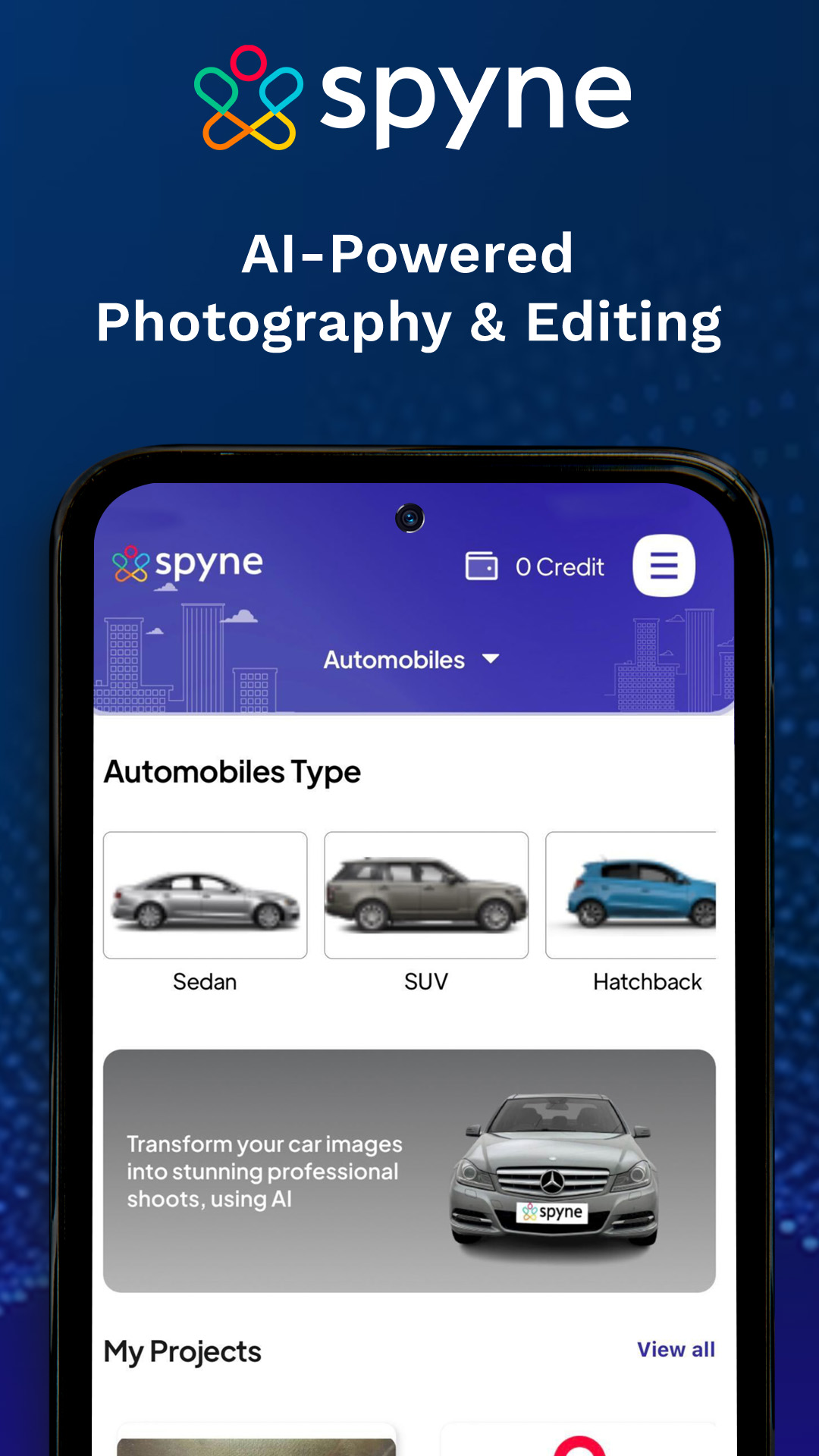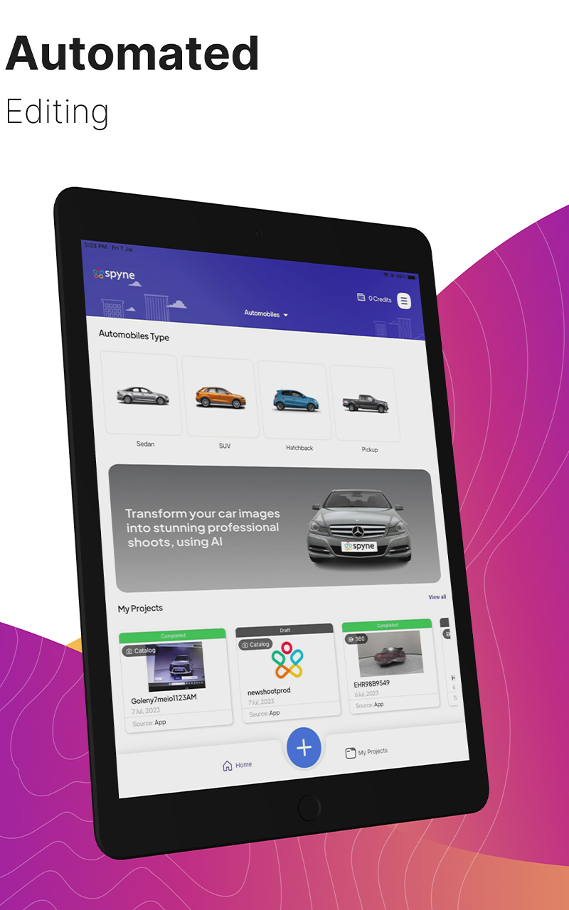 Spyne helps you capture breathtaking images of your car like never before! It’s the ultimate AI photography and editing app for Android. Powered by advanced AI technology, Spyne empowers you to transform your car photos into professional-grade masterpieces. Edit thousands of car images in seconds, ensuring exceptional quality and consistency. Whether you're an automobile enthusiast, a car dealership, or a seller in the automotive industry, Spyne is your go-to app for capturing stunning visuals that showcase the true beauty of your vehicles. Elevate your car photography game with Spyne and make a lasting impression on car enthusiasts and potential buyers. Window Shadow Correction: Say goodbye to shadows and reflections on car windows with Spyne. Easily remove unwanted shadows and capture clear, vibrant car images with a single click. Upload your image to the app, and let our advanced AI technology handle the rest, ensuring impeccable visuals that showcase your car in its best light. With Spyne, achieving shadow-free car photography has always been challenging. Number Plate Masking: Protect seller privacy by automatically removing number plates with Spyne. Safeguard sensitive information while promoting your brand by seamlessly adding your dealership logo in place of the number plate. With Spyne, you can simultaneously ensure privacy and enhance brand visibility, giving your car listings a professional and personalized touch. Body Reflection Correction: Capture perfect car images with Spyne by effortlessly eliminating distracting reflections on the car body. Say goodbye to unwanted glares and achieve a pristine, polished look for your car photos. With Spyne's advanced technology, you can showcase the car's true beauty without any distractions, making your images stand out with professional elegance. Background Enhancement: Unleash your creativity with Spyne and photograph your vehicle anywhere you desire. Explore a wide selection of studio and showroom backgrounds, effortlessly adding them to your car images in seconds. Enhance the background to make your car stand out and create a visually captivating impact. With Spyne, the endless possibilities allow you to showcase your vehicle in any setting you envision. Let your car photos tell a compelling story with the perfect background that amplifies its allure. 360 Car Photography: Revolutionize your car marketing with Spyne's cutting-edge 360-degree image capture feature. Ideal for car dealerships, Spyne enables you to effortlessly capture immersive 360-degree images for online sales and marketing materials. Follow the on-screen app guide or take a walkaround video to click pictures from different angles. Spyne leverages these images to create a perfect 360-degree video, providing potential customers with an engaging and comprehensive view of your cars. Elevate your online presence and captivate your audience with the immersive power of Spyne's 360-degree technology.