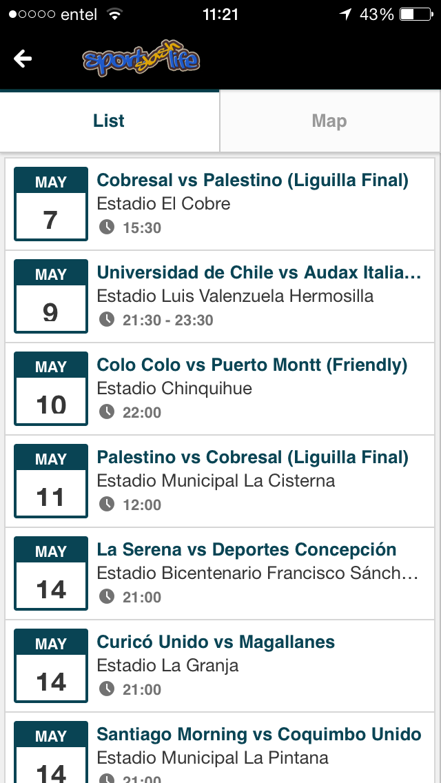 Stadium Locator is a sport fan's best friend. Providing location based information on stadiums and events for a range of sports, the app is currently ready for the Chilean market, with football, basketball and rugby tournaments up to date. Sports will be continually added and updated.