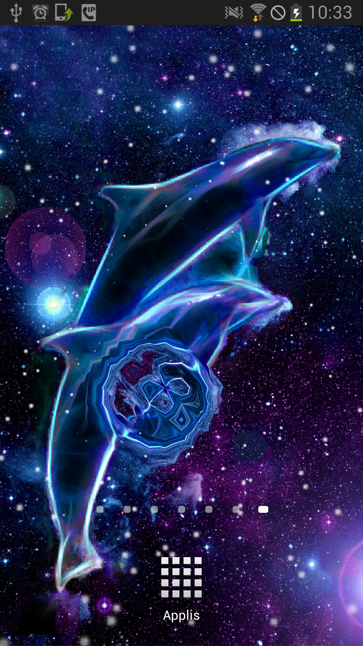 "Starfield Dolphins Galaxy LWP" is an original and surprising Live Wallpaper with Animations and Special Effects. Download it without delay and try it quickly on your phone or your tablet. Animation : WATER RIPPLES EFFECTS Your screen becomes water simply passing the finger over. Touch or tap the screen for it becomes a water or a wave movement appears on the screen. More you touch the screen, the greater water ripple effect is important. After download: press long on the phone screen, choose the live wallpaper section and then choose your great new live wallpaper to set it on your screen :) Or you can to follow theses instructions : Home -> Menu -> Parameters -> Wallpapers -> Live Wallpapers Settings: - Activate or desactivate the water ripple effect in automatic mode. - Activate or desactivate the special effect on background, the starfield. Features: - Live Wallpaper, - water ripples effects, particles, animation, - multi-touch effect, - support most resolutions including Android tablet, - support landscape and portrait screen mode, - use 3D hardware to render images, save battery Warning: This free application has a system of no intrusive ads. Our live wallpapers contain no icon ads and no notifications. Your phone will not be subject to any virus. All the permissions are required only for the ads and are handled by trusted providers. This live wallpaper has been tested on latest devices such as Samsung Galaxy S3, S4, Note, Nexus 7, HTC Desire S, Sony Xperia Z, Motorola Droid and Asus Prime Transformer. Don't hesitate to contact us by Email, if your phone is not supported or if you encounter any problems. We will respond to your request as quickly as possible.