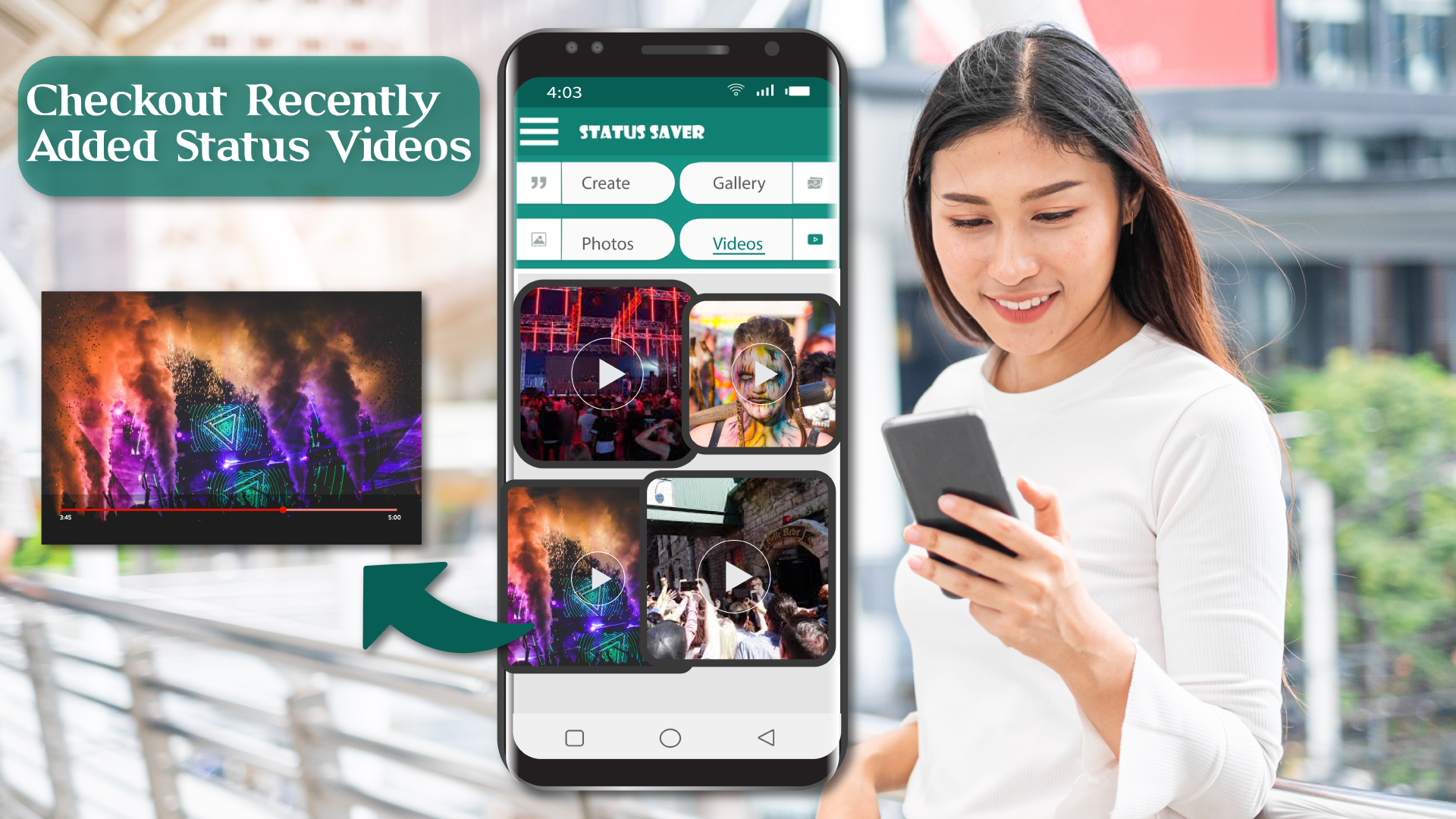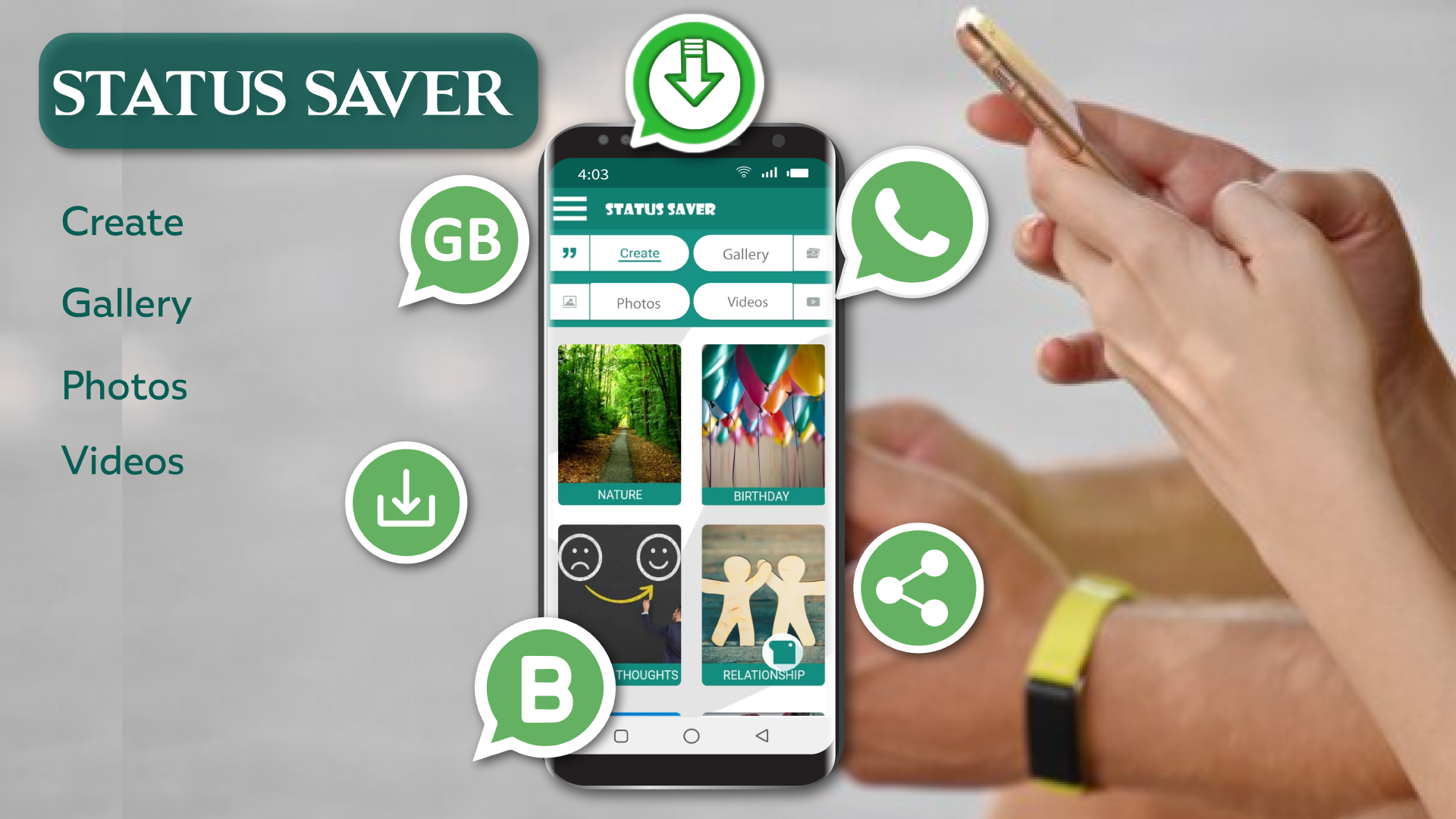 The Status Saver for Whatsapp fastsave photos and videos directly into your mobile storage by its video saver downloader features. Status Downloader for Whatsapp easily downloads videos and images. Picture saver for Whatsapp gives a variety of trending birthday, romantic, emotional, funny, love, car & many more categories of wallpaper to edit and create your own status for WhatsApp using this picture saver for WhatsApp.
