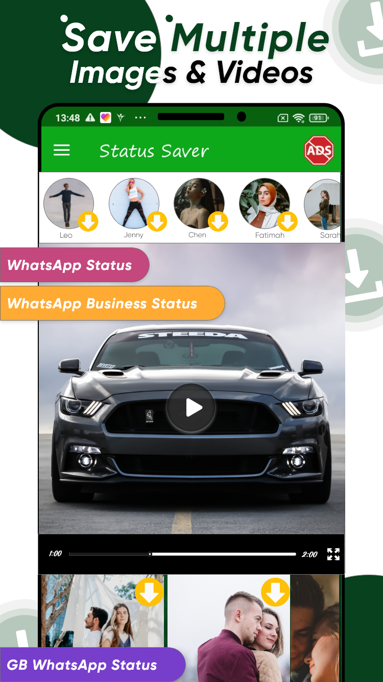 WhatsApp status downloder app let you save photo images, GIF, Video status. Fast download - WhatsApp Status with this Status Downloader Free.