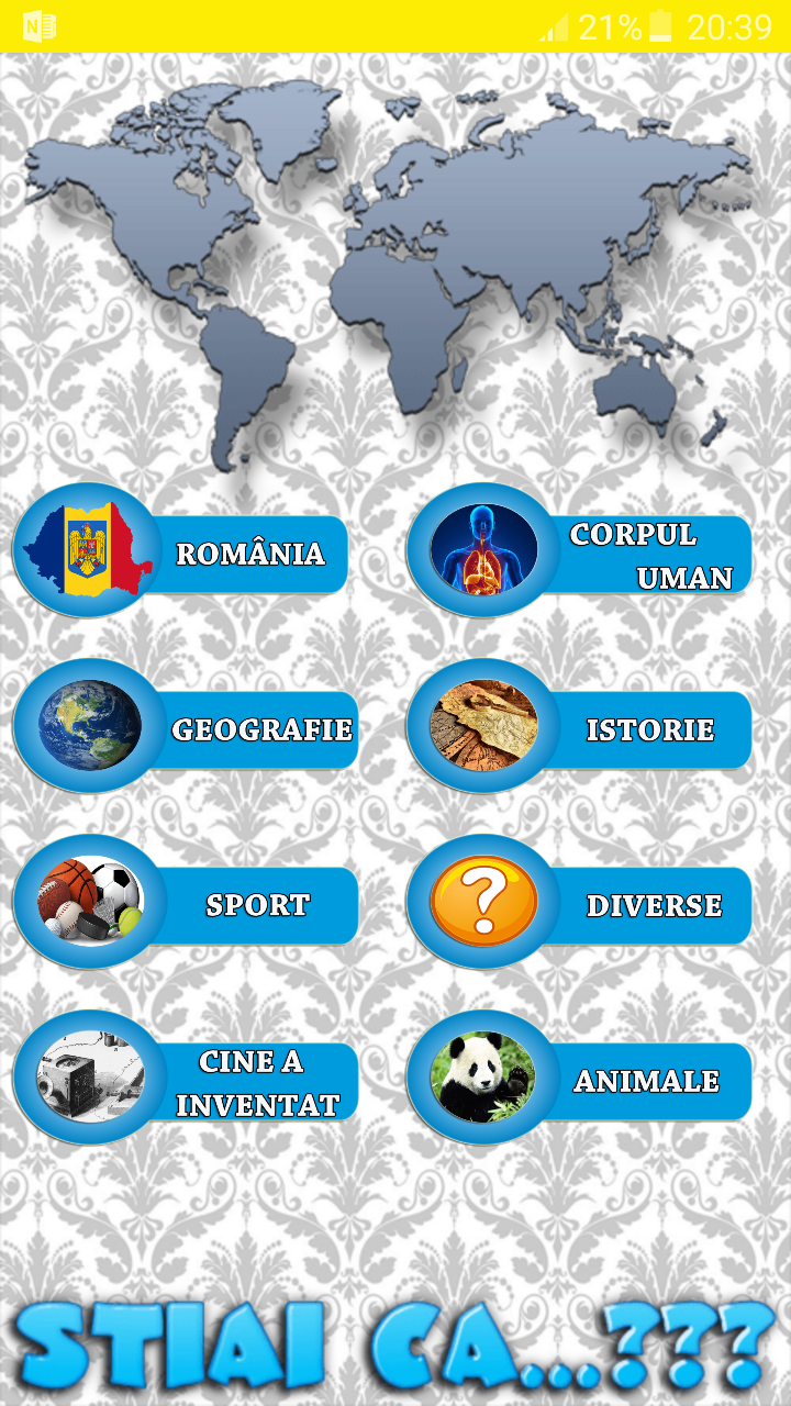 "Did you know" is an application that brings information from many fields. We provide, curiosities in several areas: Romania, history, geography, sports, who invented human body, animals, information about different countries, and many others. You will find many things that you never knew before. The application will be frequently updated to be added curiosities us.