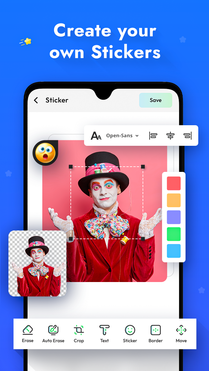 😜Sticker - Sticker Maker is the best app for Create your own stickers and Video Downloader for WhatsApp and Instagram share social media. Looking for a free WhatsApp sticker creator app? Need to turn your photographs into amusing WhatsApp stickers rapidly and effortlessly? Need to challenge how cool and fun your WhatsApp stickers can be? Well, this WhatsApp sticker creator application is precisely what you want. Create WhatsApp Stickers with sticker.ly for whatsapp - Sticker Maker & Video Status for WhatsApp! Sticker is a free sticker maker for WhatsApp, create personal stickers that can easily turn your photos into stickers. We are a super smart and clean camera sticker maker app for WhatsApp Using this fantastic custom sticker creator, you can create your own personalised sticker packs and stickers with your photos and share them with your friends and family! It's incredibly simple to use. Have fun with the perfect sticker maker! Any photo on your phone would suffice! It's time to create spectacular and amusing stickers with this fantastic free personalised sticker maker software! Create your own beautiful sticker pack by drawing inspiration from Hollywood celebrities, TV shows and movies, animals, amusing memes, sports, anime, captions, lyrics, quotations, and emojis. WhatsApp sticker maker Stickers offers stunning Whatsapp Stickers and cool GIF that will amuse you with distinctive animations and amaze your friends and family. You may diversify your WhatsApp stickers with a few clicks and enjoy all of the benefits of a sticker. Our stickers include a wide variety of emojis and animals, as well as flowers and love. sticker maker A robust text sticker editor is included in Sticker Maker - Make Sticker for WhatsApp stickers. It has a number of unique features that make WhatsApp stickers more appealing. Text sticker curve, sticker text shadows, text sticker templates, and more text sticker special effects are available. Sticker Maker has a large range of popular text sticker fonts. Sticker is a one-stop-shop for making stickers for WhatsApp and Telegram. Your sticker's position, size, and angle can all be changed. Each sticker can also have a caption. You may make an unlimited number of personalized stickers for WhatsApp and Telegram using our WhatsApp sticker creator. Send stickers to your WhatsApp contacts Your friends don't need the app to view your stickers, but we'd appreciate it if you told them about it! 😇 By long-pressing a sticker on their WhatsApp, your pals can access the app. The "Share" menu in the app allows you to share the app link Here you can Make your Own stickers with selecting any type of Photos and make transparent them with Module or also draw outline of the sticker with your finger. Easily include words and captions as your Content Sticker as your Individual Stickers 40+ handpicked content textual styles with editable colors make Content Stickers your Individual Stickers. A simple and valuable sticker creator is accessible to you! You'll now have more fun discussions along with your companions and family on your Whatsapp bunches and chats together with your claim emoji pack uncommon for you! Share the fun along with your social circle with this shocking emoji maker. You can make edit sticker with Text you enter with different Fonts, Text styles, sticker 360, and all-new Unique backgrounds. That Attract Your Friends to you Features: * Supports all picture formats, jpg, webp, png, etc. * Create personal stickers with one click for permanent use. * Remove stickers you no longer like from sticker packs. * Share your customized sticker packs with friends. * Customize HD quality stickers. * Auto detect videos and fast download with one click. * Download videos and social media clips in HD quality from all social webs. * Pause, resume, delete, and share downloads. * Check progress in the download bar. * Save videos and Stickers than share social Networks.