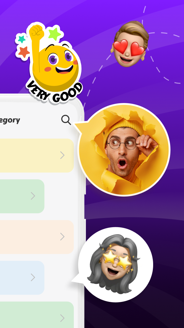 WhatsApp stickers you will have more fun when text messaging your friends and relatives. Using your own face or the portraits of your friends, you can freely express your feelings and share the brightest emotions in a funny and extraordinary manner.