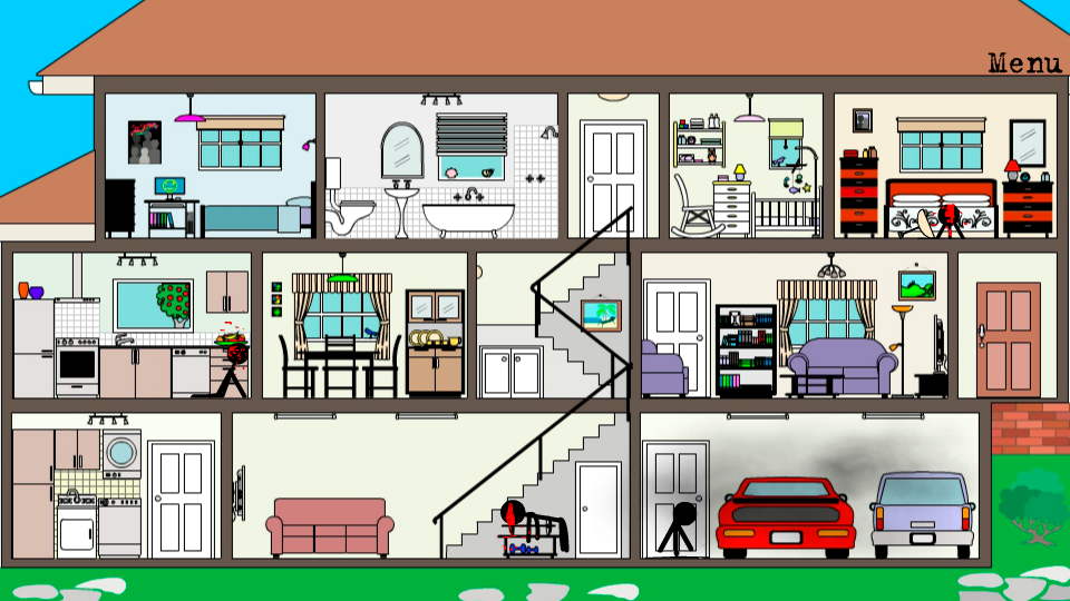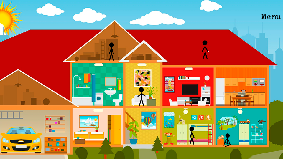 Friends! We offer one of the many favorite series of games about stikmen. The game's plot In the game you have to eliminate the criminals to make no application reviews of the houses of civilians. You are a secret agent of the national security of the country and in your best interest to eliminate terrorists. You will be working undercover. Behind your back will always be the world order and people in black clothes. For you will be fighting other super secret mercenaries. Features But how to eliminate opponents? This is up to you. It is up to you to determine the success of the counter-terrorist operation. Can you use the means at hand, or using one of the most popular super heroes? And may be just enough to catch the right moment and not make any effort? After all, time is unlimited, so you can calmly, slowly, to think and express all your imagination. The game will not only fans think, analyze the situation, but also those who love to spend time not boring, pleasing place is ridiculous situations. If you want to brighten up your dull day interesting, entertaining game with colorful graphics and addictive gempleem, then Stickman Killer perfectly to deal with that. The game is absolutely free. Graphics and Animation Graphics juicy, performed at a high level. Animation is a fun, sometimes funny, that can not affect the good mood. Good music that complements the bright colors of the game. The game engine has Adobe AIR 2D, which will allow you to enjoy this wonderful game on any mobile device based on android. The game has a low requests for your hardware, the picture will go without a brake. gameplay The game consists of three locations. At each location there will be five criminals. Each must be killed in a unique way. For example, you can kill Stickman chandelier, another killer to kill the window. Another Stickman suffocate in the garage working on the car. Another Stickman spotyknetsya on the stairs and die. One will take even a flying saucer from the window. In the second one location Stickman die under the wheels of the car, to another tree falls on the third meteorite fall, the fourth kill black people. The third location first Stickman die of a broken heart, because he sees the ghost. The second die from the zombies. The fourth enemy will die from that collapse beneath the floor, and on the fifth Stickman toy samurai fall and strike him through the head of his sharp sword.