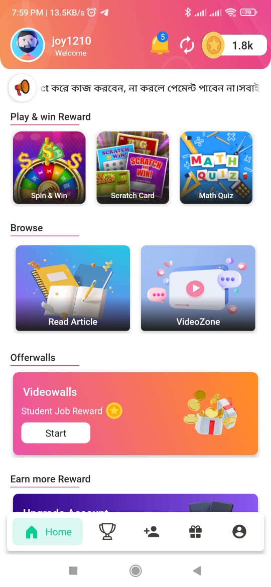 Student Job App Offers is a best app for user who want to earn cash. there many option for earn cash user can earn cash via download app + invite friend also earn with watch video earn simple app beautiful interface.