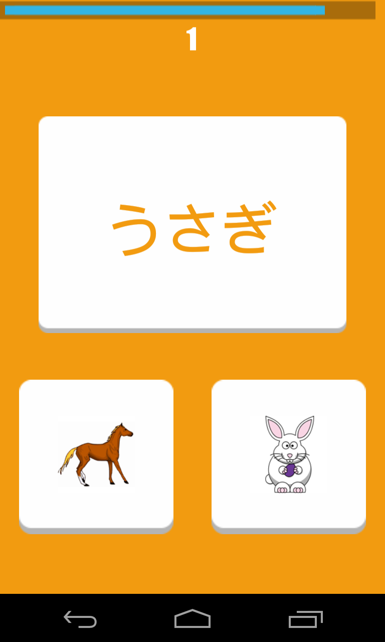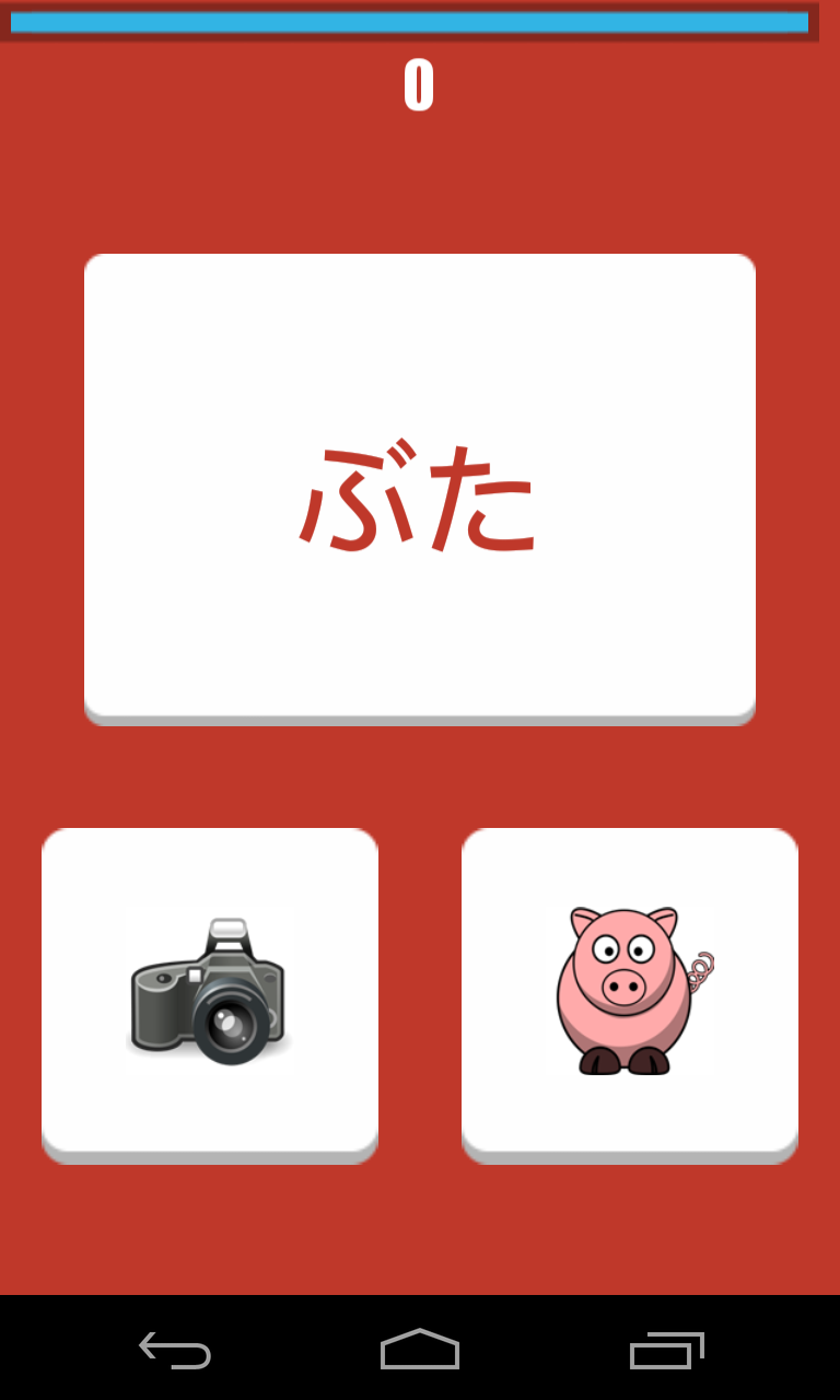 Play game to study Japanese vocabulary New game with fancy design interface There are two game modes: Text Game and Image Game. Words are displayed in hiragana, katakana and kanji Each questions has two answers to choose. There is only one answer is correct and you have to choose it in a specific time. Play to study Study by playing