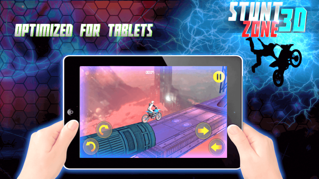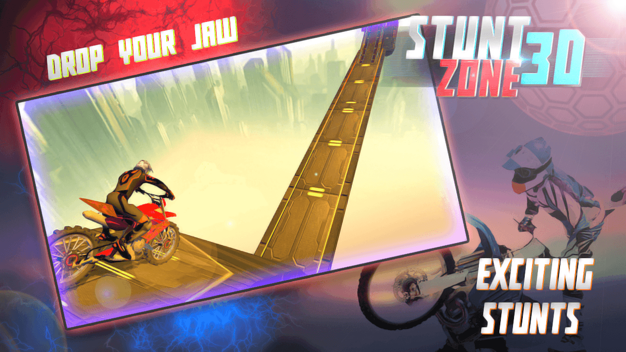 “STUNT ZONE 3D” is the latest milestone in world of stunt biker simulation. Multi Touch Studios present to you the combination of mania, madness and bike racing. This is a physics based stunt bike racing game where you can choose from street bikes, choppers, sport bikes, be a daredevil and perform insane daredevil stunts. Check your performance as bike racer by level statistics at the end of every level. Time is your obstacle so strap your helmet on and complete the stunt course on your custom motocross bike in this absolutely FREE game.