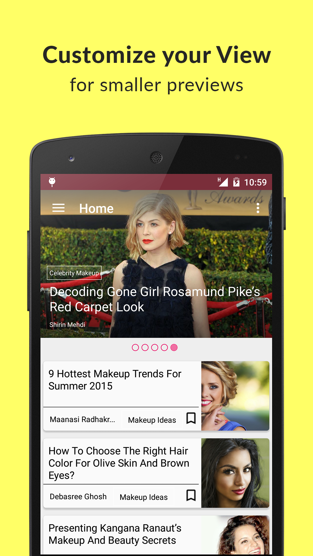 StyleCraze.com, India's Largest Beauty Community is your guide for everything related to Makeup and Beauty. Get your daily dose of Beauty tips, Makeup and Hairstyle tips from renowned beauty experts and bloggers. The App helps you stay up-to-date on the latest beauty trends and to get solutions for all your beauty queries. - - - - - - - - - - - - - - - - The StyleCraze Android App features: - Every Make up and beauty article published on the website. - Step-by-step make up, beauty and hairstyle tutorials. - Beauty expert tips and tricks - Daily beauty editorial stories featuring latest beauty trends, new beauty product releases, celebrity beauty news, skin care tips, hair care tips, health tips and advice. - Beauty photos featuring hairstyles, makeup looks, nail designs, bridal looks, and the latest beauty trends to get inspired. In depth editorial features include: - How To Do Makeup? - Nail Art Designs: Over 1000 Nail art designs along with tutorials - Beauty Tips: In depth Beauty tips for Face, Beauty tips for Hair, Beauty tips for Skin, Beauty tips for Eyes etc - Homemade Face Packs: Go Natural with over 100 Types of Face packs and masks - Acne/Pimples - How to get rid of Acne and Pimples effectively once and for all - Skin Care: 360 degree Skin care to take care of all your skin's special needs - Hair Care: Wide variety of tips and tricks to get long, strong and healthy hair - Dandruff: How to cure dandruff once and for all - Hair Loss & Hair Growth: How to effectively control hair loss and what to do to improve hair growth - Hairstyles: Choose from over 2000 hairstyles, right from Short to Long, Curly to Bob, Classic to Funk etc - Weight Loss: In depth articles on How to lose Weight naturally and effectively - Mehndi Designs: Over 1000 Mehdni Designs to choose from - Tattoo Designs: Interested in Tattoos? - We got your covered on everything related to Tattoos - Diet Tips: Want to lose weight right away - choose from GM diet, 1200 cal diet, Banana diet and a lot more - Yoga: How to practice Yoga for a healthy body and mind - Healthy Food: Which Natural ingredients should you consume for staying Young and Healthy? With all these features, StyleCraze is definitely your No.1 resource for Makeup and Beauty tips and tricks.