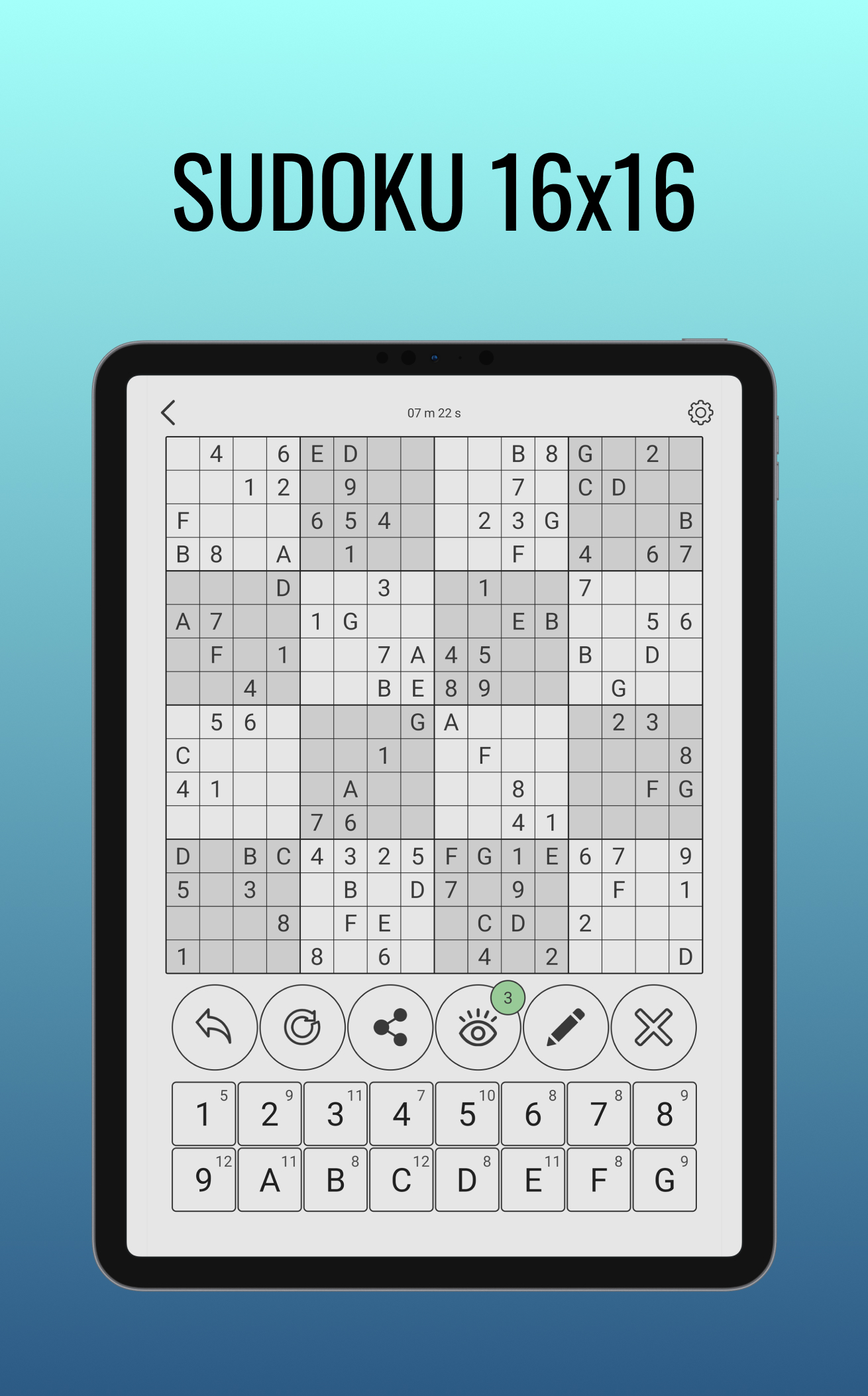 🚫 Hardcore version of the Sudoku game 16 by 16 cells. There are no clearly defined values in the cells; you decide for yourself how to complete the levels. The puzzle is intended exclusively for serious fans of the genre. 🚫 Modified classic sudoku for mobile phone or tablet. Gather the values so that there are no repetitions. A classic puzzle for the development of brain activity. Classic Sudoku is a logic number puzzle game where the goal is to place the numbers from 1 to 16 in each cell of the grid so that each number can only appear once in each row, each column and each mini-grid. With our sudoku puzzle app, you can not only enjoy sudoku games anytime, anywhere, but also learn sudoku Welcome to the world of Endless Sudoku 16x16, where the puzzle possibilities are boundless! Immerse yourself in the ultimate Sudoku challenge with a massive 16x16 grid that promises an ever-changing gaming experience. Endless Sudoku 16x16 Features: Infinite Variety: With a virtually endless supply of puzzles, no two games are alike. Each grid is a unique adventure waiting to be solved. Adaptive Difficulty: Our game adjusts to your skill level, ensuring that both beginners and Sudoku veterans find the perfect challenge. Dynamic Grids: Experience the thrill of dynamic puzzle layouts. No more repetitive patterns – every puzzle is a surprise. Smart Hints: Get helpful hints when you need them most. Our intuitive hint system ensures you never get stuck for long. Community Challenges: Engage with a vibrant community of Sudoku enthusiasts. Participate in special challenges and events. Sleek Design: Enjoy a visually stunning and user-friendly interface that enhances your puzzle-solving journey. Achievements and Rewards: Earn achievements and unlock rewards as you progress. Can you collect them all? Compete Globally: Show off your Sudoku skills on the global leaderboard. Compete with players from around the world. Dive into the world of Endless Sudoku 16x16, where every move is a choice, and every puzzle is a fresh opportunity. Whether you're a casual gamer or a hardcore puzzler, the variety and depth of our game will keep you hooked for hours on end. Are you ready to embark on an endless Sudoku adventure? Endless Sudoku 16x16 Infinite Sudoku variations Dynamic puzzle challenges Sudoku puzzle with adaptability Unique Sudoku grids Smart hint system Community Sudoku challenges Sudoku achievements Sudoku puzzle for all levels Sudoku 16x16, the ultimate number puzzle challenge! This mind-bending game takes the classic Sudoku concept to a whole new level with a 16x16 grid. Are you ready to put your logical skills to the test? Sudoku 16x16 Features: Larger Grid: Enjoy a massive 16x16 grid, providing a thrilling and more complex puzzle-solving experience compared to the standard 9x9 Sudoku. Multiple Difficulty Levels: Whether you're a Sudoku beginner or an expert, we offer various difficulty levels to suit your skill level. Unlimited Puzzles: Never run out of puzzles to solve. Our game generates unlimited Sudoku 16x16 puzzles, ensuring you'll always have a fresh challenge. Intuitive Interface: Easy-to-use interface with helpful features like pencil marks, error checking, and hints to assist you along the way. Sleek Design: Enjoy a visually pleasing and user-friendly design that enhances your gaming experience. Statistics Tracking: Keep track of your progress with in-depth statistics. Monitor your best times and accuracy as you improve. Compete with Friends: Connect with friends and compete for the fastest completion times on our leaderboard. Get ready to immerse yourself in the world of Sudoku 16x16, where precision, logic, and strategy are your keys to success. Challenge yourself, sharpen your mind, and become a Sudoku master today! Sudoku 16x16 Sudoku puzzle game 16x16 number puzzle Logic and strategy game Brain teaser challenge Sudoku app for mobile Number grid puzzle Sudoku solver