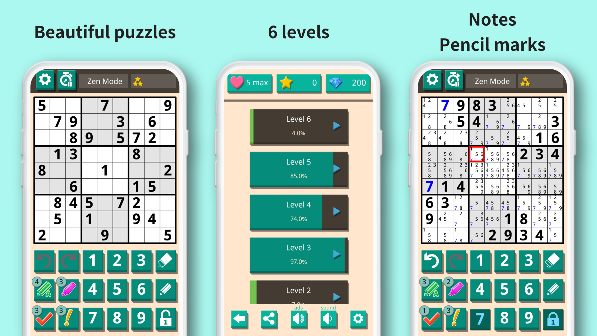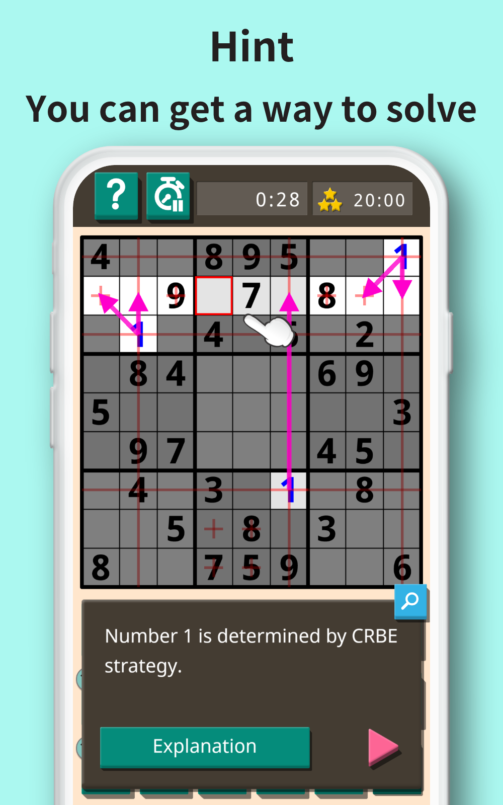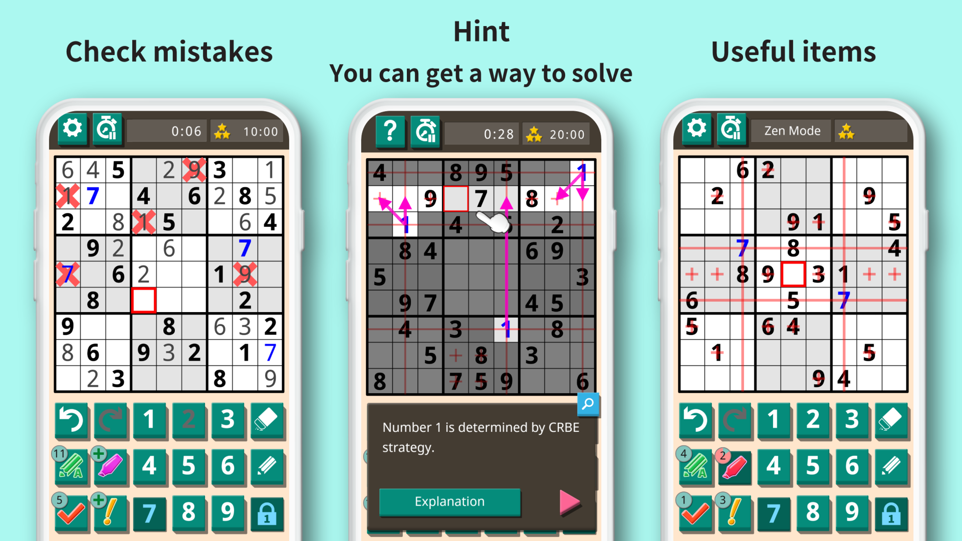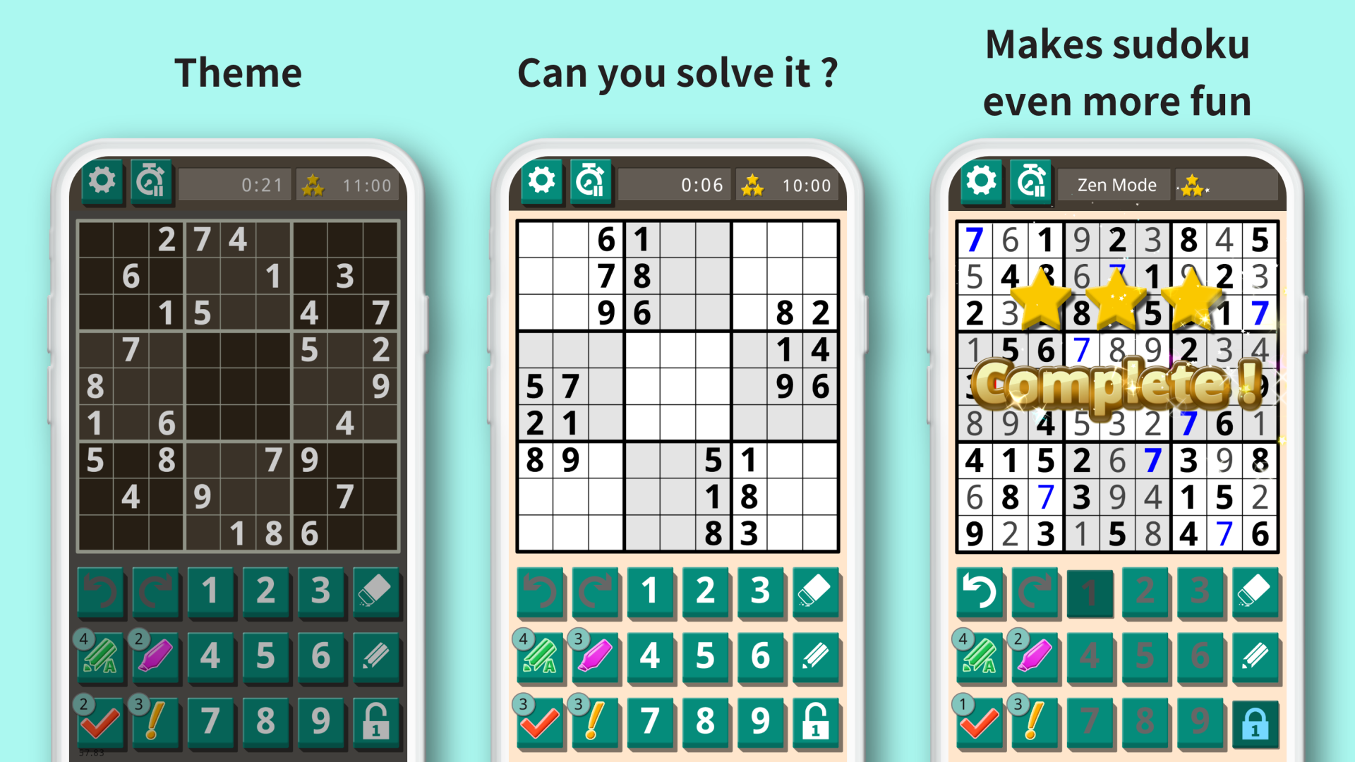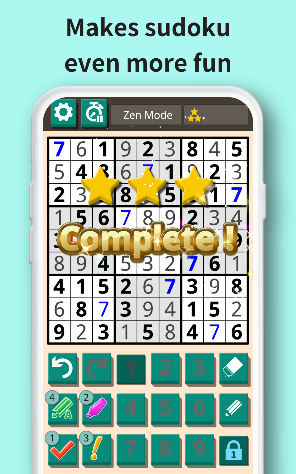 "Sudoku classic" is based on the popular classic number puzzle. You get 42,000 challenging games in 6 levels that are easy to difficult to train your brain. You can challenge the game of your favorite difficulty level according to your mood for the day. Not only can you enjoy Sudoku games anytime, anywhere, but you can also learn Sudoku techniques from them. Of course, each puzzle has only one solution. So this can all be solved logically, which is good for your brain, logical thinking, memory, and a good time-killer. Sudoku is known as a logic-based, combinatorial number-placement puzzle game. The goal is to fill a 9×9 grid with digits from 1 to 9 in each column, each row, and each block. (the 3×3 subgrids that compose the grid). The game does not use addition, subtraction, multiplication, or division, so even those who are not good at math can enjoy it immediately. Sudoku was named in japan. This means Sūji wa dokushin ni kagiru (数字は独身に限る), which can be translated as "the digits must be single" (In Japanese, dokushin means an "unmarried"). And the name was abbreviated to Sudoku (数独), taking only the first kanji of compound words. "Sudoku" is a registered trademark in Japan. Key Features : • NumLock - One-touch switching between number-first input and cell-first input. • Pencil-mark - to write down small numbers in the cell. (just like notes) • Automatic deletion of overlapping Pencil-marks. (Selectable) • Zen mode - You can turn on/off the timer when you play the game. • Hint - If you get stuck during gameplay, we offer logical hints on how to solve the puzzle. • Interactive Tutorials - Detailed step-by-step how to solve tutorials will help you learn the basic techniques for completing the puzzles. Useful Items : • Auto Pencil-mark - to fill all of the Pencil-marks automatically. • Check Mistakes - You can check at any time whether there are any mistakes and where they are. • Marker - to find hidden blanks. • Technique Hint - to show you a hint when you have no idea. It not only opens the answer for a cell, but it points to the logical solution. Also • Highlight Duplicates - to avoid repeating numbers in a row, column, and block. • Autosave - to save data when you leave a puzzle unfinished. Continue playing anytime. • Undo, Redo - to retrace your steps. Unlimited. • Dark theme - It can protect your eyes from blue light. Even on sleepless nights. • There is an option to change the color of the selected numbers. • Turn on/off ads sound. • Turn on/off sound effects. • Leaderboards - Ranking for each level. • No obtrusive banner ads while solving puzzles. Since the puzzles are solved logically, no mistakes will be pointed out automatically (except for duplicates). Moreover, No matter how many mistakes you've made, no ads will be displayed as a penalty. Outline : - Classic 9x9 grid Sudoku - 42,000 well-crafted Sudoku puzzle games in 6 levels - Logical hint item that display how to solve the puzzles - Simple and intuitive design Sudoku is also famous for its fantastic brain game. "Sudoku classic" is a fun and entertaining app to help you develop and maintain brain abilities such as memory, concentration, and reasoning. That is ideal for brain training as well as for killing time. This free Soduku app is suitable for both beginners and advanced Soduku players. Lower levels are for fast playing and brain teasers. Higher levels are for contemplation and improving skills. You can enjoy this simple and standard 9x9 Sudoku to your heart's content. Of course, free to play!