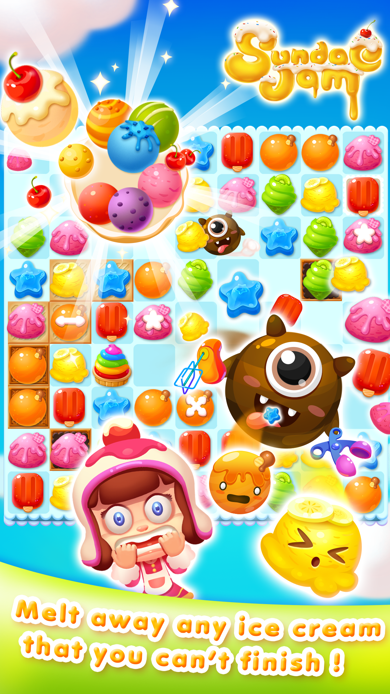 Explore all kinds of magical islands that are full of cool and refreshing ice cream. Delicious! Join us on our awesome journey. Hundreds of meticulously designed levels that’ll give you an experience you’ll never forget. Lots of ways to match ice creams, as well as really useful boosts to help you progress through the game. Beautiful islands, cute characters, a unique level unlocking system, all in Sundae Jam! A game that’s easy to master with great rewards for completing levels, you won’t be able to put it down! What are you waiting for? Get started on your Sundae Jam journey today!