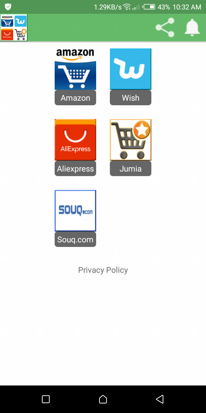 Save your effort, time and storage space on your phone with this application Super Market, for online shopping, Download now and you will not regret. Super Market - is a free private browser for online market. All in 1 online market, It provides you with a lot of great marketing sites like Amazon and Alibaba and wish and souq.com .... you can easily buy a product online using this application.
