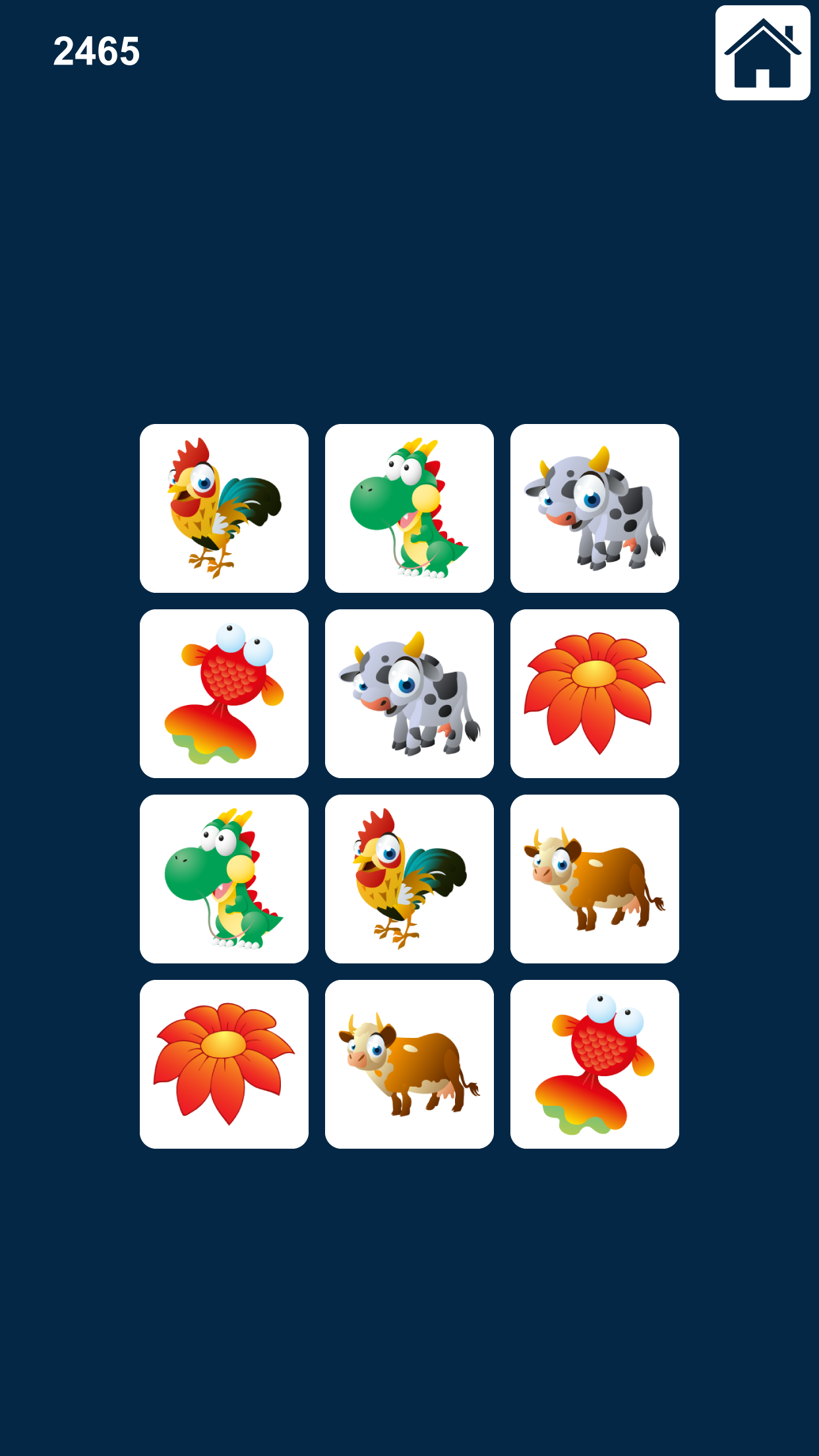 The game is about matching the same cards to train and improve memory, concentration, attention, accuracy, recognition, processing speed, logic skills and brain performance for all ages adults and kids. You can match pictures, match numbers and match math equations. Boost your memory, sharpen your brain and improve your concentration. Be brain Fit. The game may help with short term memory problems or lack of attention. How to play: - Memorize the board of disordered cards. - Match up 2 or 3 cards according to each level. - No time limit. - You can start from the first level or from the highest level you reached in previous plays. There are 2 modes of difficulty: - Easy: Contents of cards are shown at the beginning for some time before being flipped over again. - Hard: Contents of cards are not shown at the beginning. There are 3 modes of contents: - Images of animals, birds, fishes, butterflies, desserts, fruits, cars and others - Numbers - Basic Math Equations The game is matchup game, picture match, concentration game, memorization game, memory game, memory puzzle, math puzzle game, numbers puzzle game, math training game, brain game and educational game to train and improve memorization and concentration . The game is very good choice to spend your free time for adults and kids. The game supports 14 languages: English – Arabic – French – Spanish – German – Japanese – Chinese – Urdu – Hindi – Italian – Portuguese – Turkish – Russian - Korean Play, enjoy and have fun ! For more games, please visit: https://mobilemathgames.blogspot.com/