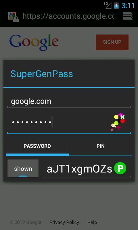 2.2.3: Major bugfix on PIN generation. If you generated a PIN using this app for a domain that contains a sub-domain (e.g. foo.example.org), the sub-domain was not properly stripped. This is now fixed so it works like SGP. To generate PINs in the same way as they were before this fix, disable domain checking in the Settings.