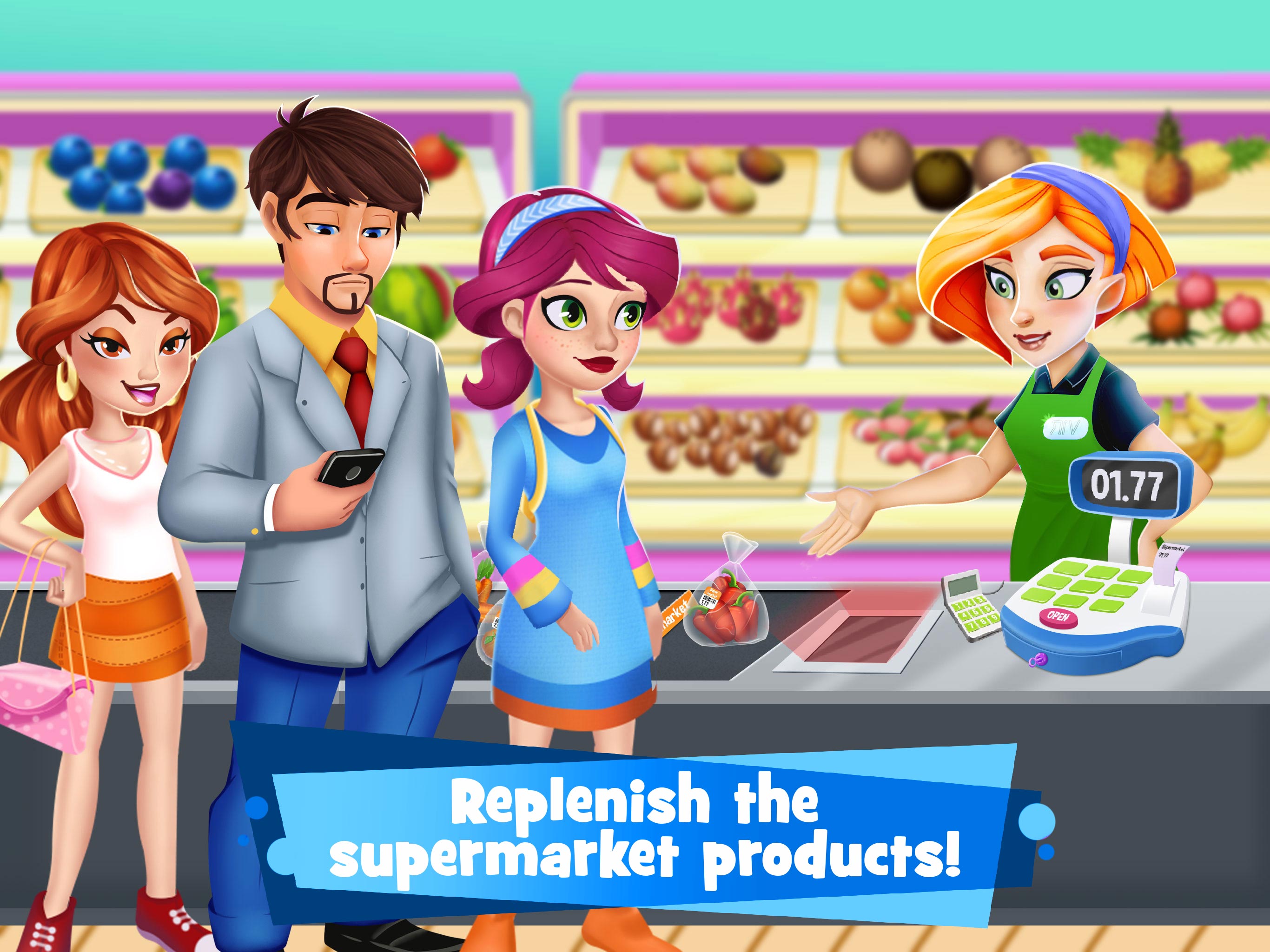 Can you manage a real supermarket empire? Collect the purchase? Replenish all the stock on the shelves? Then this is your store and cashier game. In Supermarket Manager simulator you will have a good time every second you play, you will have to help all the market people to leave your store satisfied, enjoying this unique business management game. Being the manager of this crazy idle game is not easy at all, you will have to be attentive to all the mini-games and puzzle challenges to be a real supermarket manager. This is all you will be able to do in Supermarket Manager Simulator: • Cash all the city as a supermarket cashier simulator. • Become a real market manager. • Replenish basic and luxury products in your store. • Help your clients not to forget anything on their shopping list: Sandwich, snacks, clothes or gourmet products. • Clean and organize the shelves from the grocery store. • Throw away all expired products. • Helping clients find their clothes and lost items. • Choosing the supermarket employees' outfits. Your job as a business game supermarket cashier, the mall includes cleaning skills. Replace the broken inventory with a new one and move on to the next step in this cashier simulator: restock with fresh fruits the store! Serve clients in this business game, Sell quality food, desserts and drinks at the cash register and let your clients pay by cash or with credit card. Learn the numbers as you collect payments on the cash register. In this supermarket game you will manage the store cash register, the lost and found section and oversee the mall as a manager. Discover the magic in this casual supermarket, food and shopping simulator adventure! Just like in other shopping simulator grocerty games, here you will also have to explore different ways to manage the market, your items and workers, all to improve your store and make it as big and better as you can. Each task will become more and more complicated, so don't forget to log in every day to replay the supermarket games and have your store always on point - you'll see how much fun you'll have! In addition to all the mini-games, this shop game offers you the following: • Enjoy an authentic simulation of management and direction. • You will find music that will thrill you and keep you hooked every minute. • Fun graphics that will make you feel immersed in the game. Download Supermarket Manager Simulator now and start enjoying like a real idle tycoon on this store game!
