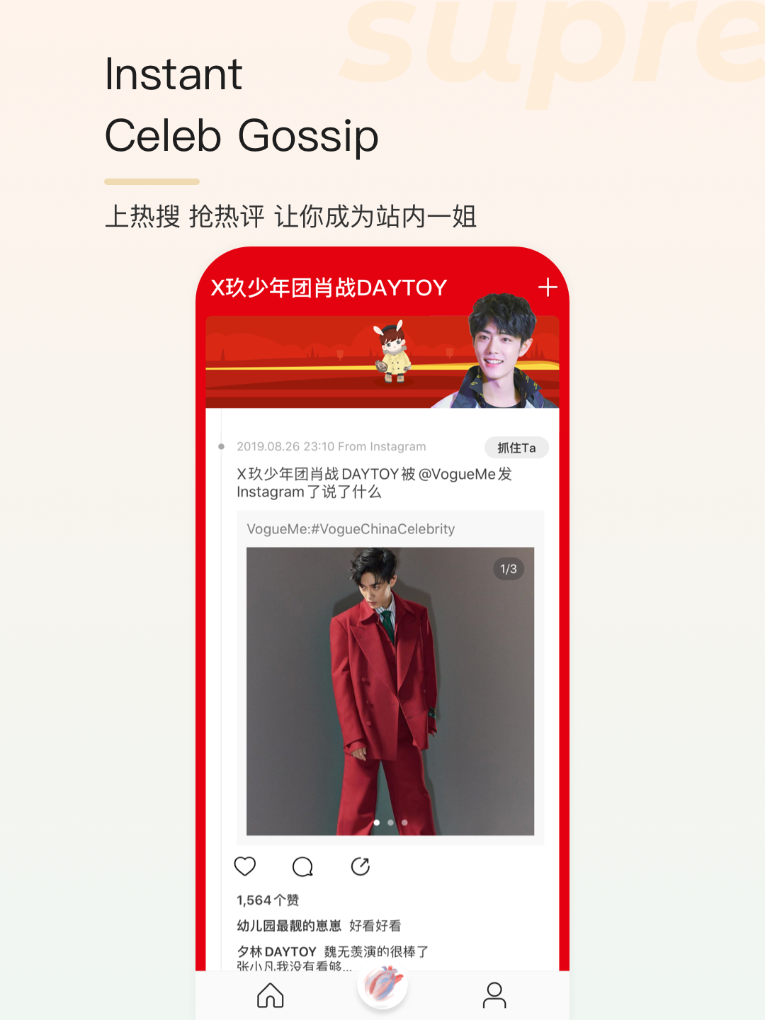 Fans in addition to attention to current as Li Yi Feng, Lu Han, Wu Yifan, TFBOYS (Wang Junkai, Wang Yuan, Yi smelt one thousand Xi), Zhang Jie, Wei Chen, Chen Weiting, Huachen Yu, Yang Mi, Zhang Han, Chen Dong, angelababy, Dilly Reba, Deng purple chess Deng Chao, Zhang Yixing, Zheng Kai, Li Chen, Chen He, Xie Na, Huang Zitao, Liu Shi, Zhong Hanliang, Tang Yan, Lee Min ho, Lin Zhiying, JJ, Zhao Liying Yang Yang, Li Zhongshuo, Jin Xiuxian, Bo Ran, Li Yuchun, Bibi and other one thousand popular star microblogging dynamic information, you can also concerned about microblogging, search people they want attention, from TA's Weibo, Instagram, Facebook, Twitter dynamic information readily available!