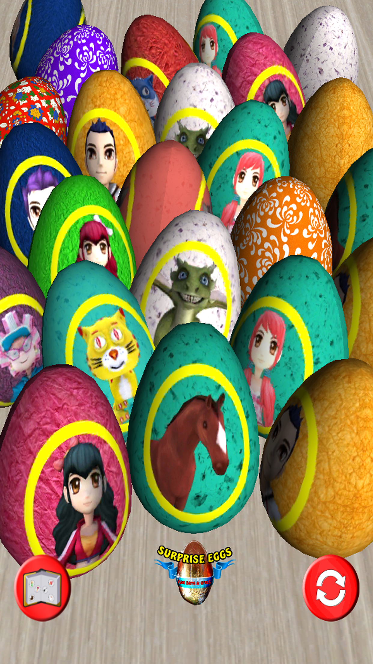 Enjoy the virtual simulator of the amazing surprise eggs. If you have kids that love to unwrap surprise eggs, this will be the ideal app for them. In this application you will find a great variety off eggs and a lot of interactive surprises to play with. You will find numerous collectable gifts belonging to different worlds such as, sports, cats, tiny dragons, princesses, horses, and many more. If you like eggs games, chicken egg games, chocolate eggs, candy surprise eggs, toys or surprise eggs games in general you will love Surprise Eggs for Boys & Girls! Enjoy hours of fun and laughter with Surprise Eggs for Boys & Girls! How to play Surprise Eggs for Boys & Girls: 1) Choose the egg you would like to unbox / open 2) Use your finger to scratch away the paper from the egg 3) Slide the finger down the screen to break the chocolate egg or activate the function button and shake the phone. 4) Pinch or press open the egg yolk (little box) containing the surprise - open egg to get surprise toys 5) Slide up to collect the surprise in your album. If you touch on the collected object in the album they will give out a sound. If all the objects are collected the album can also be used as a fun soundboard. Each surprise can be observed in the detail before it has been stored in the album. This game has been developed for the youngest children, to make it playable even for a 2 year old kid. Find surprises like football players (soccer), cartoon characters, masked wrestlers, girls, pets and much more. Surprise Eggs for Boys & Girls is also the perfect chocolate eggs app to prepare yourself for Easter ... ;-) Surprise Eggs for Boys & Girls is one of the funniest egg opening games and super eggs games! Now: Major update!