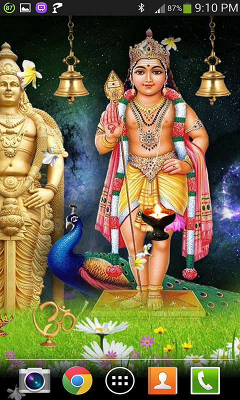 This is a beautiful high quality animated live wallpaper of Swami Murugan. It features South Indian God Lord Murugan and his tallest statue which is in Batu Caves, Selangor, Malaysia with shower of animated flowers and leaves, just touch them on the screen to transform them into flying Diyas. Features: 1. High quality live wallpaper. 2. You can hide or unhide moving items, only background will be visible. 3. You can interact with moving items just touch to interact with them. 4. You can choose direction of moving items. 5. You can select speed of moving items. 6. You can enable or disable interaction with moving items. 7. You can also enable or disable hit counter in the background. 8. You can change the frame rate of moving items to make them move smoothly on the screen. 9. Very light optimized to save battery life.