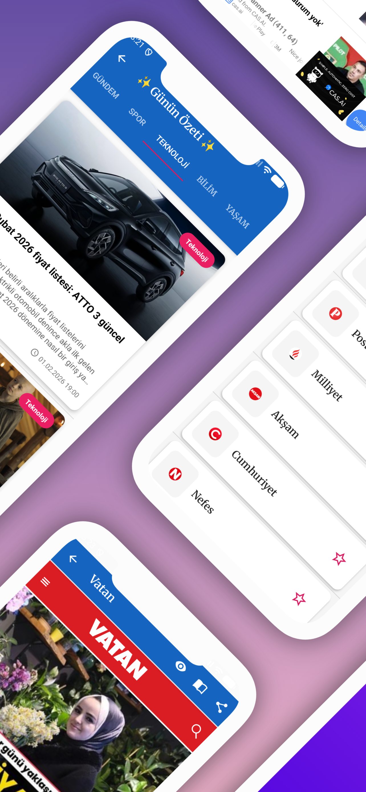 The Pulse of Turkey in Your Pocket: Powered by AI & 10 Years of Experience Access Turkey’s most read newspapers, breaking news, and daily headlines from a single, fast, and reliable platform. trusted by users for over 10 years, our app has evolved from a classic newspaper reader into a smart, AI-powered news assistant. Whether you want to read standard newspapers or get a filtered feed of specific topics, everything is under your control. 🚀 NEW: AI-Powered Smart News Feed Don't get lost in the noise! Our advanced Artificial Intelligence algorithms filter, prioritize, and categorize thousands of news items for you. Smart Categories: Get instant updates on Agenda, Technology, Sports, and Science. Real-Time Notifications: Receive smart alerts only for the categories that matter to you. 📰 All Turkish Newspapers & Headlines Access hundreds of news sources and daily newspaper front pages (Manşetler) with a single tap. A comprehensive web browser experience optimized for reading news. 💰 Live Economy & Currency Tracking Keep track of the markets without leaving the app. Gold & Currency: Monitor live exchange rates. Price Alarms: Set custom alarms for currency or gold and get notified immediately when they hit your target price. Fully Customizable Favorites Create your own news center. Add & Sort: Add your favorite newspapers to the list and reorder them via drag-and-drop. Add Custom URLs: Can't find a specific source? Easily add any website URL to your main screen. Data Saver & High Performance Limited data plan? No problem. Low Data Mode: Disable "Load Images" in settings to read text-only news, saving your internet quota and boosting speed. Smart Cache Cleaner: The app automatically clears unnecessary cache, ensuring it takes up minimal space on your phone. 👀 Comfortable Reading Experience Full Screen Mode: Focus entirely on the news. Prevent Sleep Mode: Keeps the screen on while you are reading long articles. Smart Navigation: Easily go back with the Android back button, and pick up exactly where you left off even if you switch apps. Permissions Explained: Internet & Network State: Used to access news websites and check your connection status to prevent loading errors. Why Download? Whether you are following Turkish politics, sports, or the latest tech trends, get the most comprehensive and smart news experience available. Download now and explore Turkey's agenda with the power of AI!
