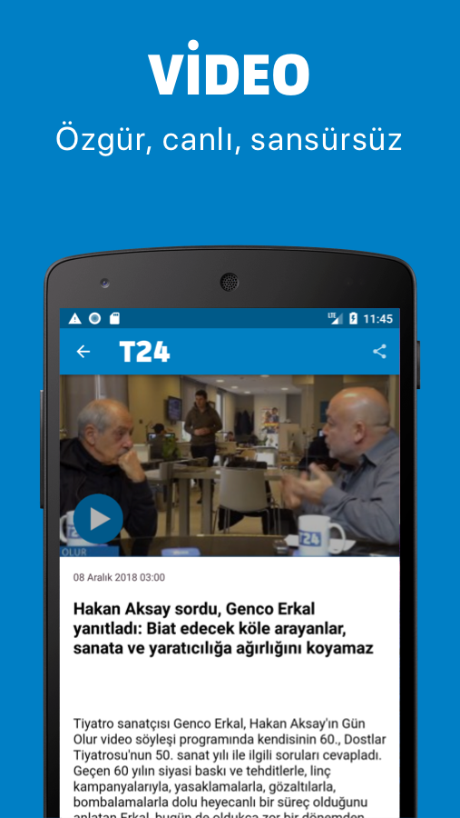 T24 Android app, free download The independent internet newspaper T24 has been launched with the Android app. With the app you can download for free from the App Store; the last-minute development, politics, sports, T24 all the news regarding the economy and foreign policy agenda of Turkey and the world of art, commentary, analysis, and you can access videos. The Android app has been created with a very simple design that provides a great ease of use in accordance with the overall planning of the T24. No opinions and beliefs putting the publication policy in front of Journalism, files, interviews, the author team of leading commentators and analysts located in one of Turkey's most trusted few news channels T24 comes across to the reader with Android apps. T24 Android application; - You can read all the latest developments about life from politics to sports, from economy to foreign news, from art to social security, from technology to education and to the world of magazines. - You can follow the writings of T24's powerful writers and analyst staff who make up the largest team of news sites. - You can monitor weather forecast with instant and future forecasts. - You can see the exchange rates with instant data. T24 will also update the T24 Android application within the framework of the changing conditions and the possibilities provided by the technology by following the notification of the readers regularly. With T24 you can download the Android app for free to track the agenda more accurately and quickly.
